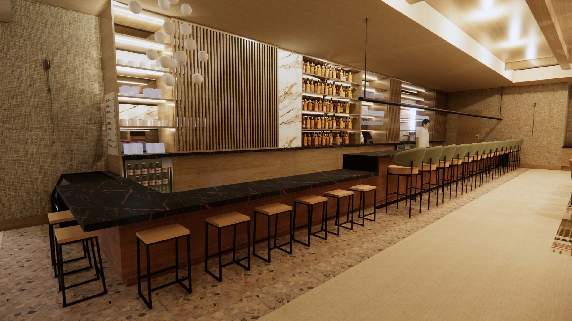 a bar with moody lighting and vibey atmosphere warm led lighting complements shelving maintain all design elements and surfaces