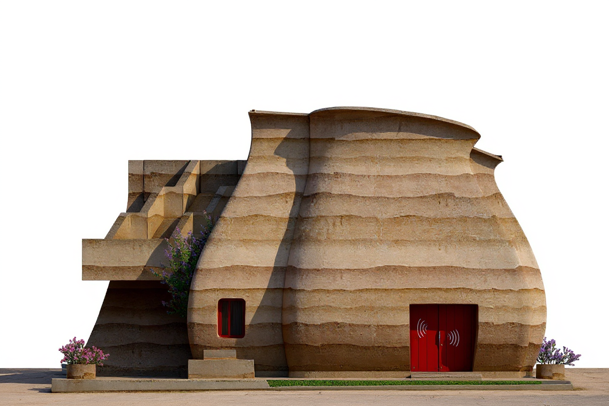 render this base image exactly as shown do not change the camera angle proportions perspective or geometry material palette should be precise and architectural pavilion frame roof smooth precast concrete crisp edges soft casting texture roof glazing clear glass with thin mullions realistic reflection subtle tint cables stainless steel tension lines extremely thin precise vertical slightly reflective existing building warm brick masonry with recessed mortar joints sharp window openings and clean edge lines no added objects vegetation or entourage minimal white background environment maintain sharpness and legibility of repeating roof modules and v columns keep scale accurate columns approximately 1 5 thick cables slender and elegant lighting bright calm daylight with long soft shadows aligned consistently across pavilion and brick envelope goal a refined architectural visualization showing a contrast between an existing brick industrial structure and a new lightweight concrete glass cable supported roof system crisp minimal high resolution and technically believable