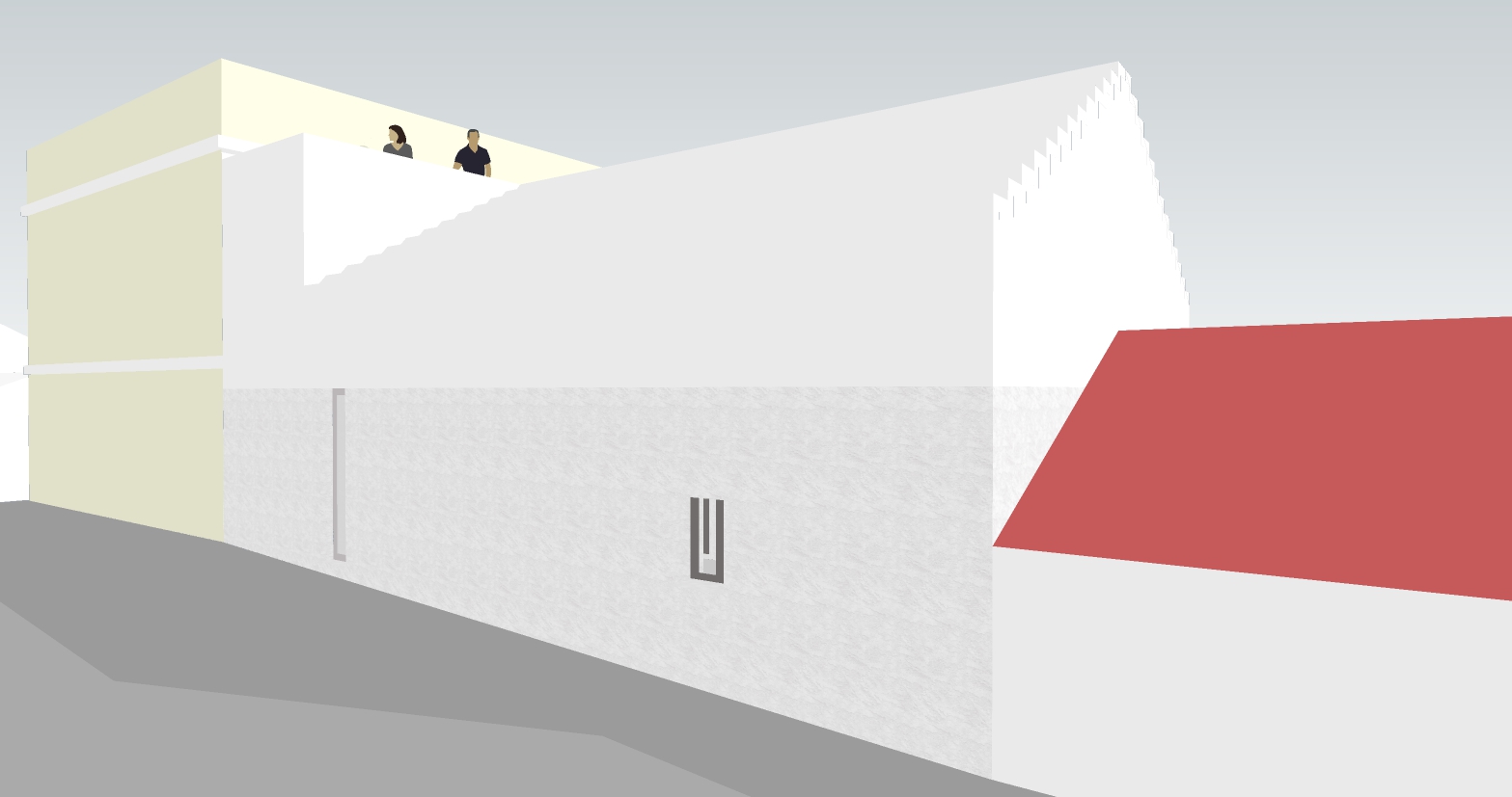 add texturese house in the middel pure white modern houses on the sides typical rural portuguese facedes and roofs