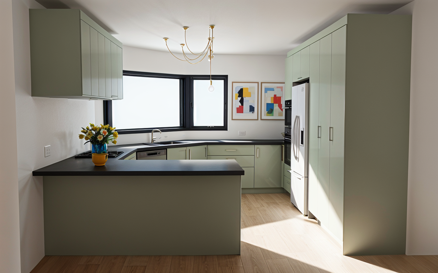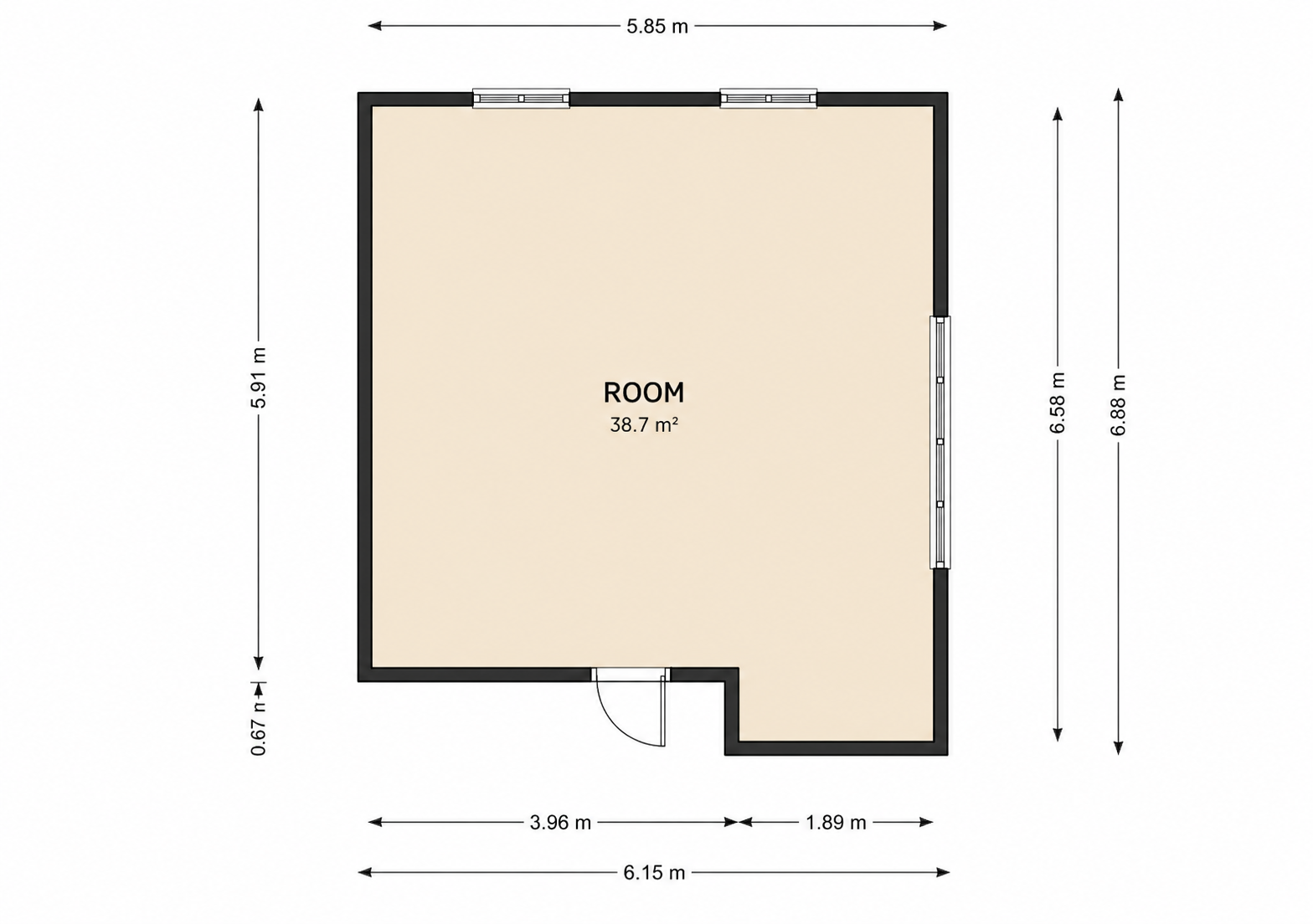 based on the attached floorpan render a realistic view of the empty room keep walls white and wooden vinyl floor
