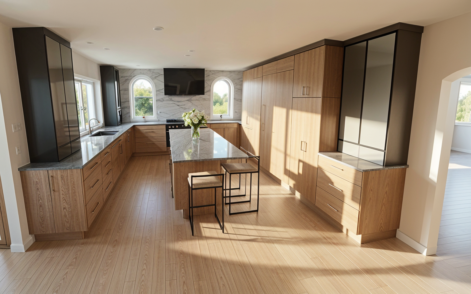 the cabinets should be a light brown color and remove the hardware only from the arched doors