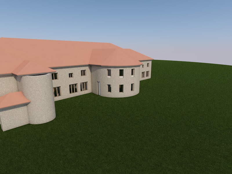 wide angle exterior architectural visualization of project description midday neutral cool natural daylight no artificial lighting visible balanced exposure medium low saturation controlled contrast corporate architectural photography style no cinematic effects no dramatic sky no warm tones clear pale blue sky with minimal soft clouds vegetation in muted olive green tones low vibrancy landscaping engineered and maintained environment clean materials without wear clear material differentiation architectural mass reads before texture subtle structural emphasis systemic spatial clarity investor oriented tone subtle emotional trigger of stability and competence ultra realistic high resolution professional architectural documentation style no sunset lighting no golden hour no warm color cast no cinematic atmosphere no dramatic fog no lens flare no oversaturated colors no lifestyle staging no artistic grain no excessive depth of field blur