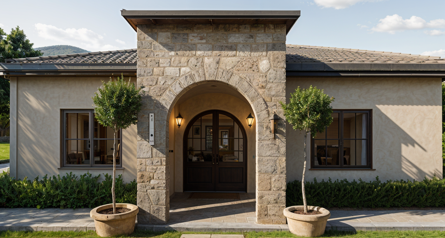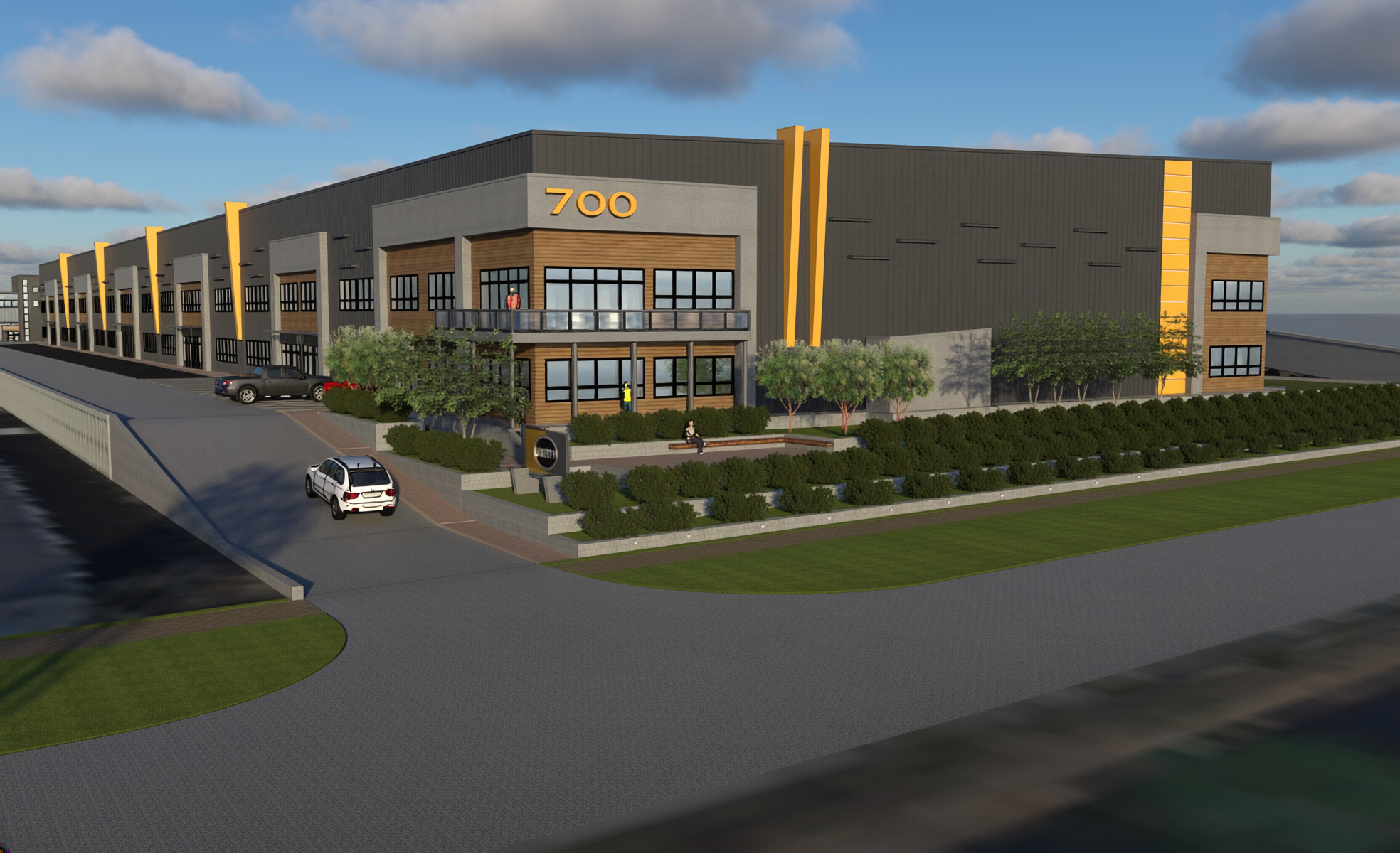 render image into an ultra realistic image keep all the shapes colors and textures the exact same add more clouds in the sky and a 2pm timeframe with proper shadows make the main road wider with 4 lanes 2 on each side of a double yellow line in the center