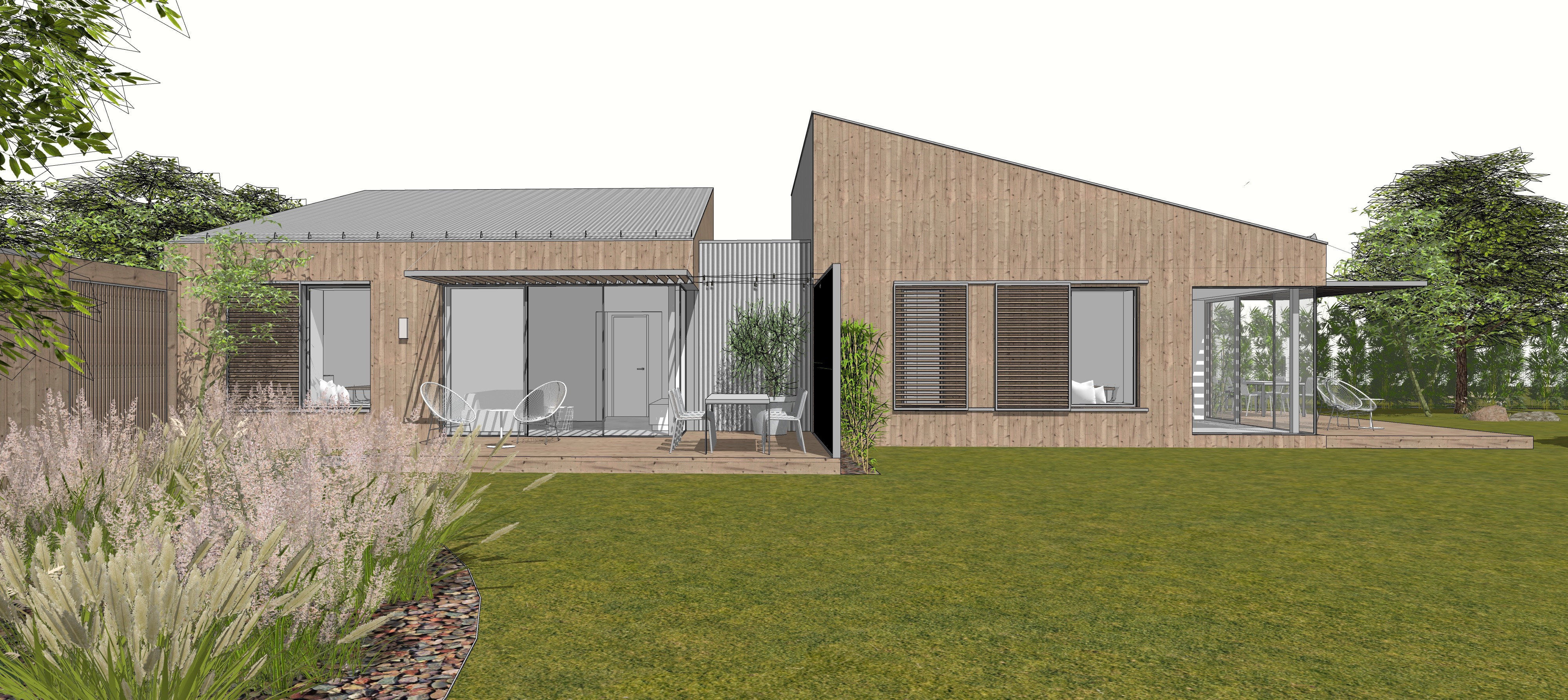 light grey window frames wooden slats for sliding facade screens late afternoon