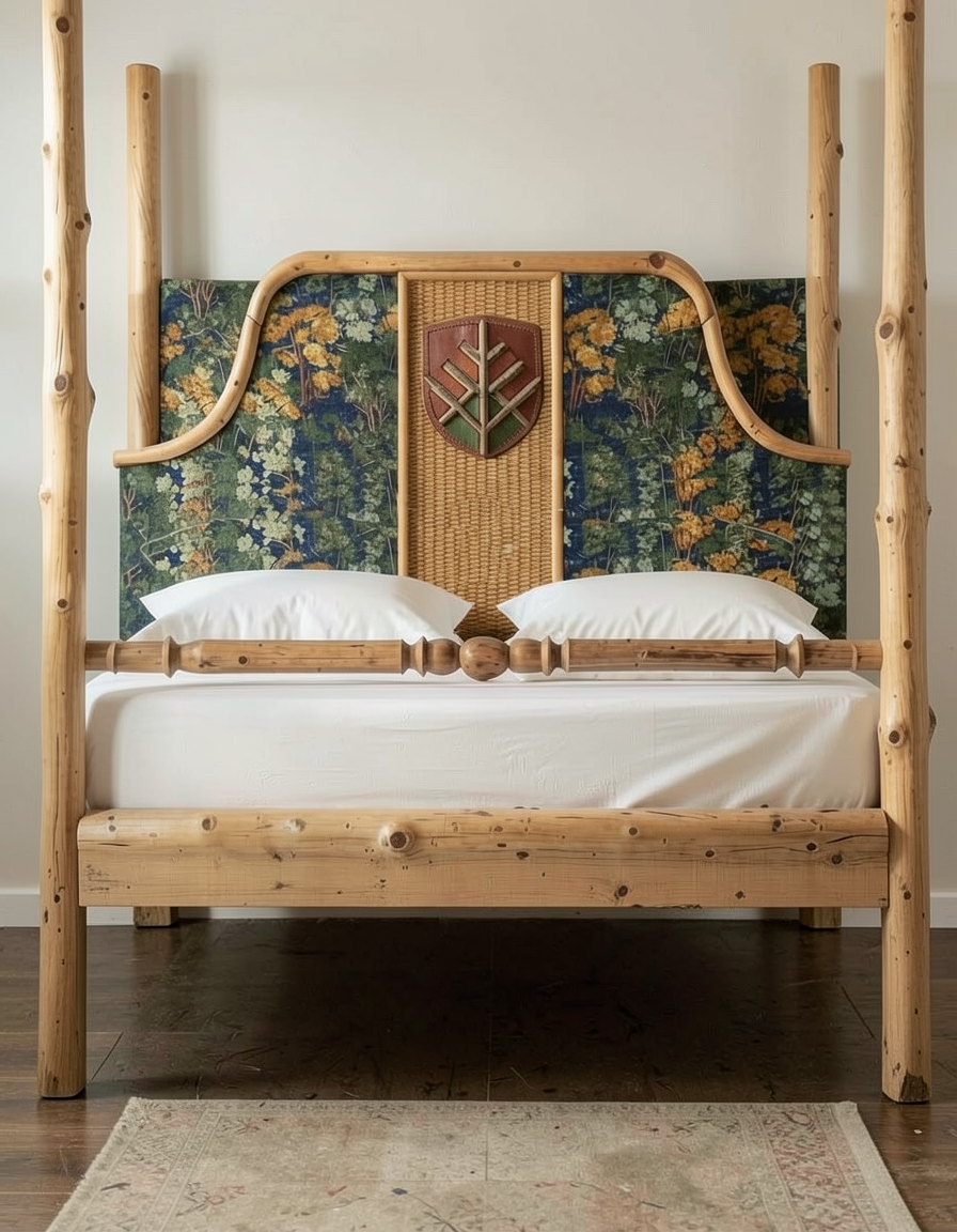 a modern two story farmhouse with sage green vertical board and batten siding black standing seam metal roofing exposed wooden truss details on the rear gable and natural timber posts supporting the full length covered patio retain the exact structure window arrangement patio columns balcony chimney rooflines foundation height and proportions exactly as shown in the reference image add a smooth concrete front driveway extending toward the house integrated naturally into the sloped terrain surround the property with a lush dense forest of tall mixed evergreens and hardwoods place the sun behind the trees so warm golden sunlight beams through the branches casting soft rays and subtle dappled highlights across the patio siding and grass create ultra realistic lighting crisp shadows detailed textures in the wood siding and glass reflections and a vibrant clear sky with light atmospheric depth render in hyper realistic architectural visualization quality 8k resolution