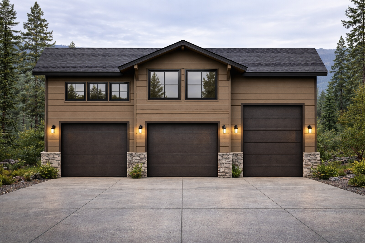keep everything the same add a small deck with a 6 glass slider where the 2 large square windows are in the middle