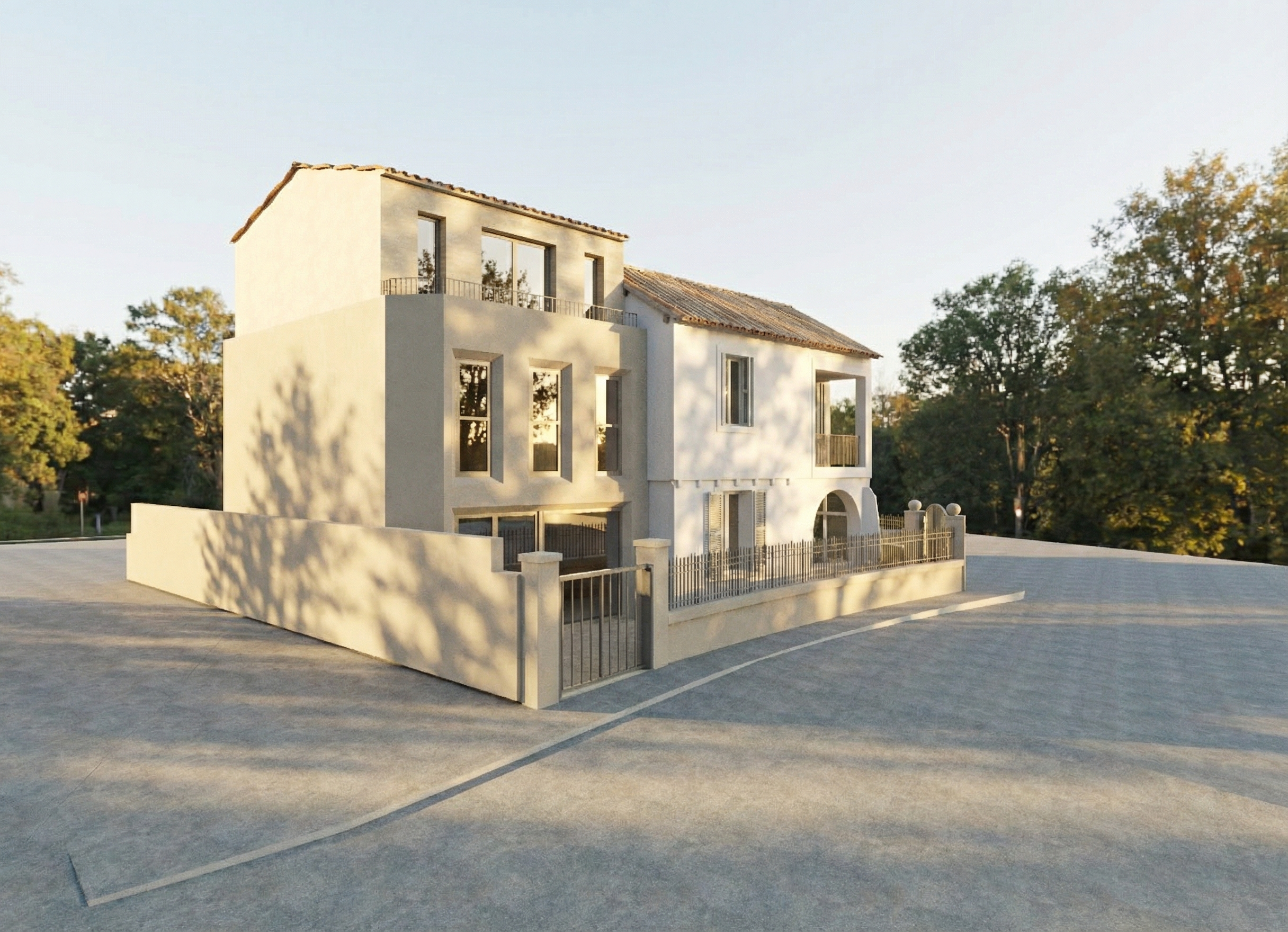ultra realistic photograph of a traditional stone country house with natural fieldstone masonry with realistic texture variation and brown tones black window and door sashes multi pane windows with subtle reflections slate roof on second floor copper roof over front door covered porch with arched windows triangular window in gable manicured shrubs and landscaping mature trees in the background soft natural daylight realistic shadows accurate proportions architectural photography dslr photo 35mm lens shallow depth of field global illumination high dynamic range ultra detailed 8k realism true to life materials cinematic yet natural color grading