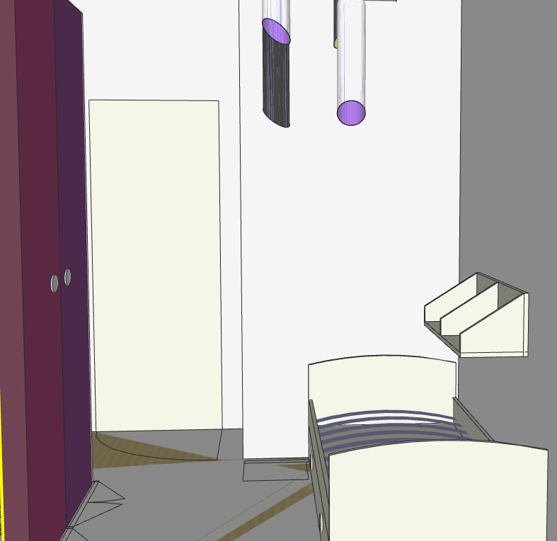 international style interior shot teenager bedroom turquoise wall lush bedding white door hanging ceiling lamp wardrobe to the left wooden floor architecture