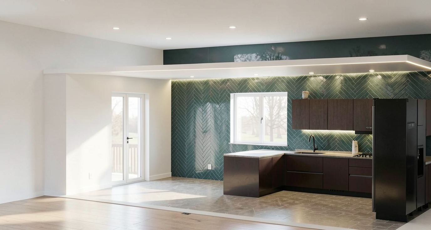 important preserve the existing geometry and the existing context exactly as provided preserve the existing windows do not add new windows do not modify alter reinterpret add remove scale or reshape any geometry do not change the site surroundings street layout neighboring buildings vegetation or context elements do not modify geometry scale proportions buildings road layout sidewalks or surrounding context in any way do not modify text soft noon atmosphere diffused neutral natural daylight with subtle cold tones cinematic architectural mood warm interior lighting 4000k glowing from inside creating slight contrast between cool exterior and warmish interior large glass surfaces with realistic reflections soft mirror effect environmental reflections of sky and surroundingsimportant do not add new windows make it darker add lights as for a rooftop party