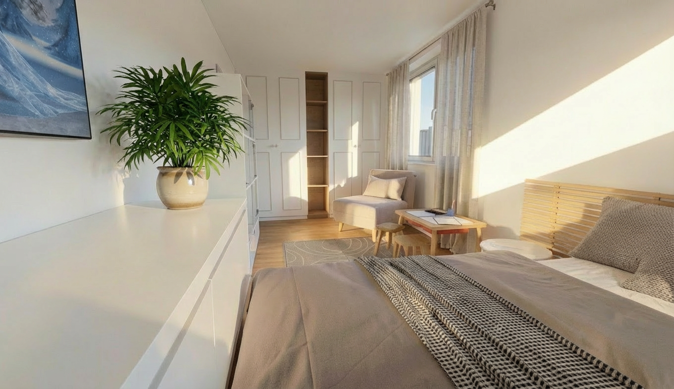 partly cloudy sky deciduous trees in background add gutters and downspouts