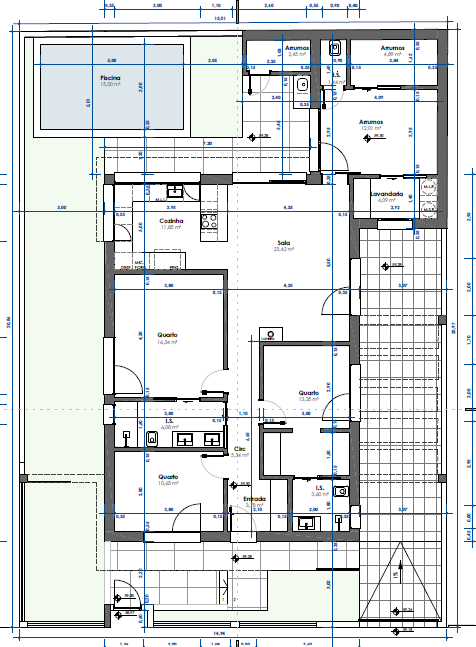 use the uploaded architectural floor plan as exact geometric reference analyze walls doors windows structural thickness and room divisions ignore dimension texts annotations and blue measurement lines focus only on structural boundaries create a clean 3d architectural model of this single storey house maintain exact proportions and layout ceiling height 2 60 meters keep correct wall thickness generate a top view axonometric 3d floor plan without furniture neutral white materials only professional architectural visualization accurate proportions