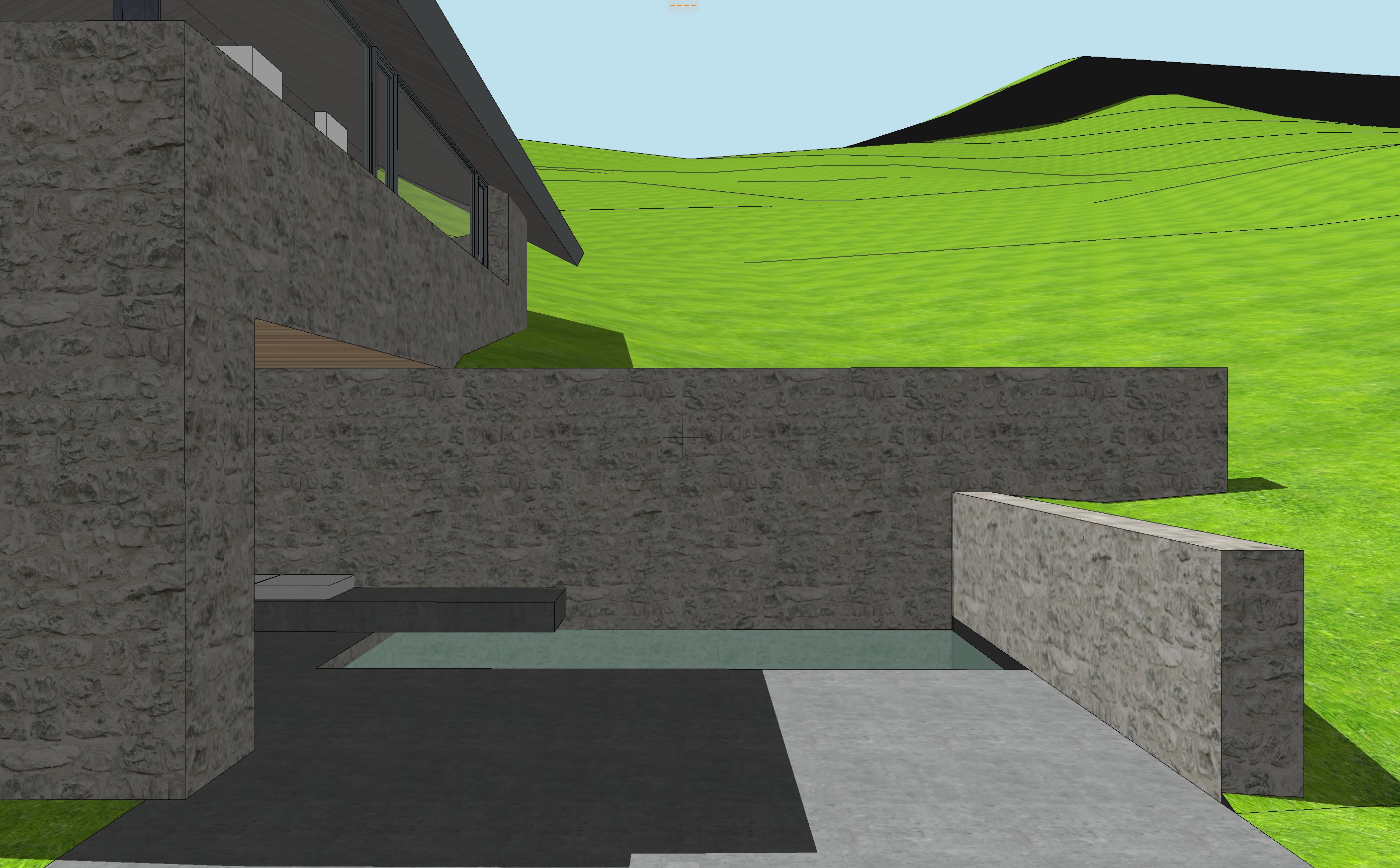 high desert landscape hillside with sagebrush and tall grasses brown drystack stone walls flagstone patio