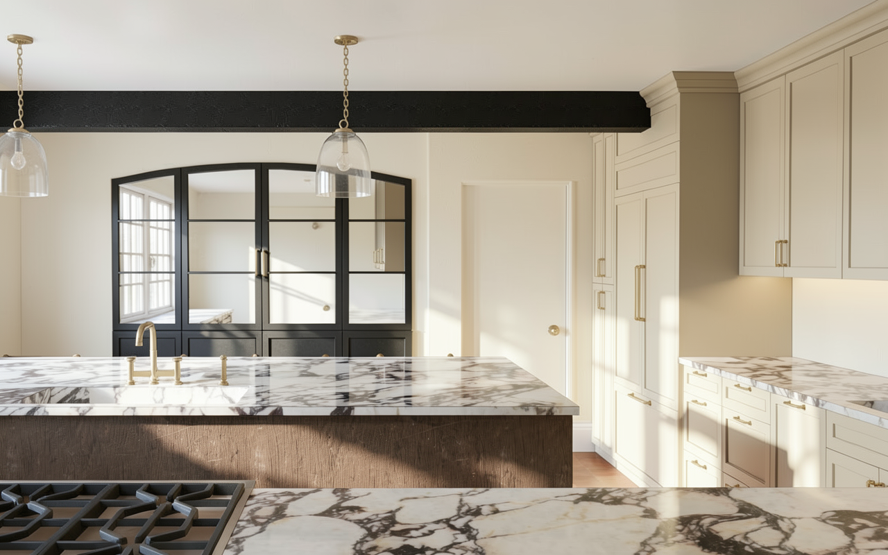 can you make the walls door ceiling and walls beneath the cabinets more of a plaster finish keep the color as shown keep everything else as shown