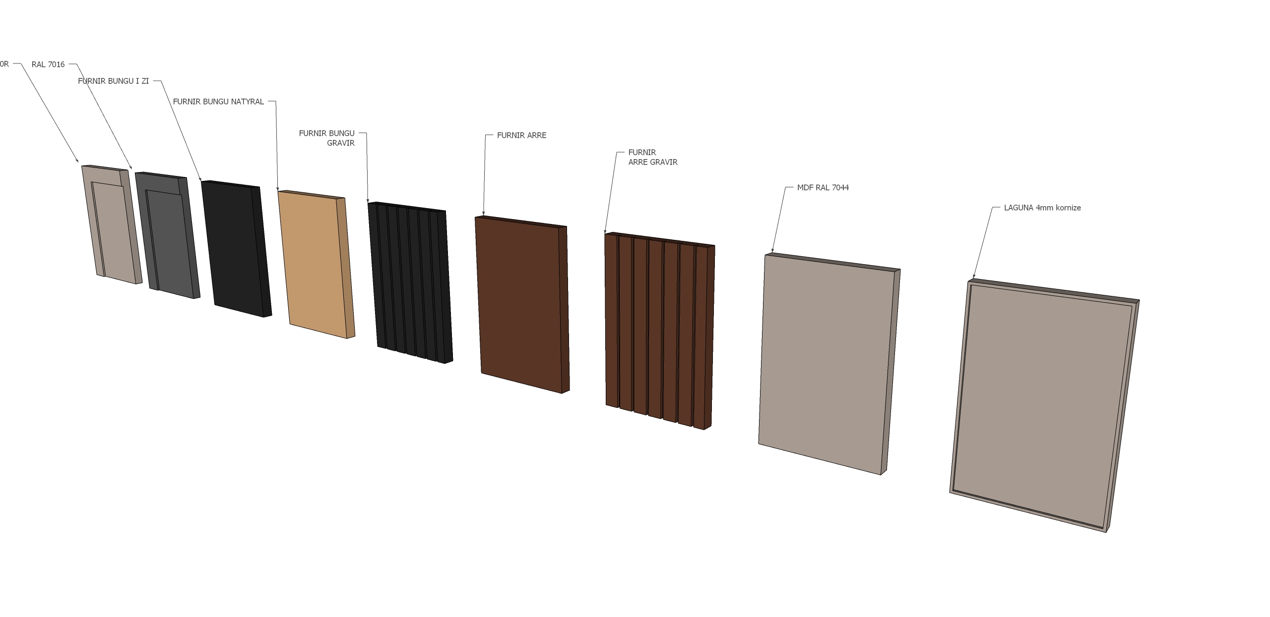make mdf samples with colors i write on the row from 1 to 9 start counting from left side 1 ncs s3005 y203 2 ral 7016 3 black oak 4 oak 5 black oak 6 walnut 7 walnut 8 ral 7044 9 ral 7044
