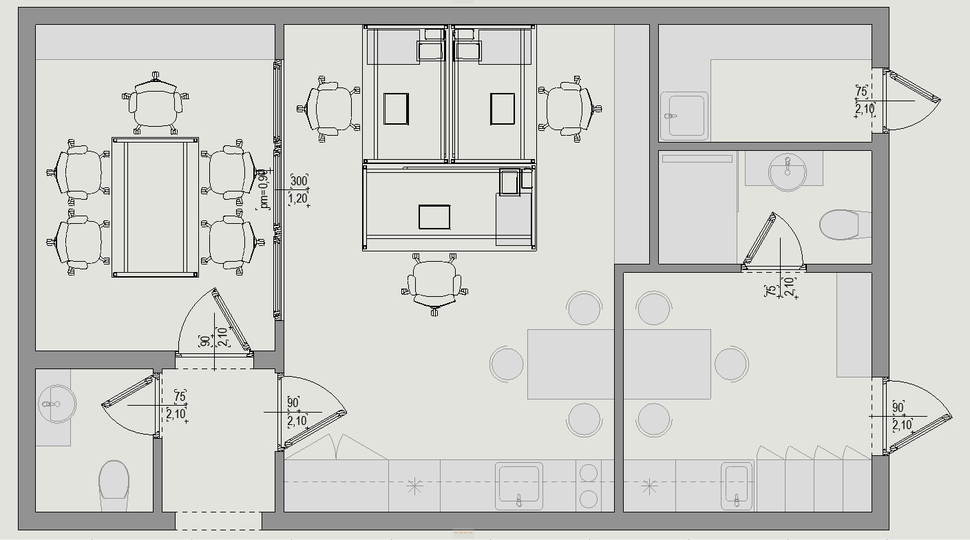 convert this floor plan into a realistic isometric 3d view of a office show the space from an elevated angle with furniture walls and details visible use the same furniture as shows on the plan do not change the orientation of the floorplan