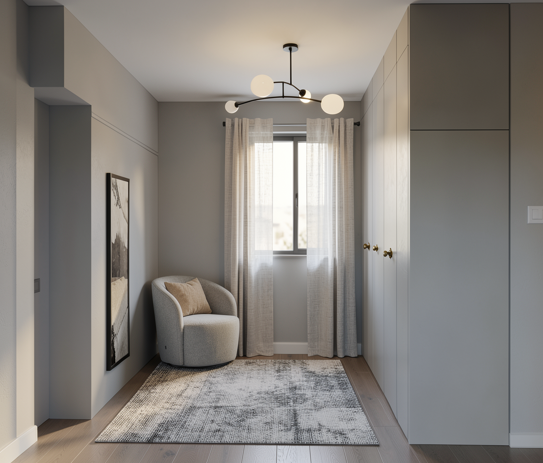 create a photorealistic image of the exterior of this home maintain the color and trim and design aspects add a basic tropical landscape design with a sidewalk out front this is a zero lot line and there are other structures on either side that are equally as tall but different styles on the left side there is a modern farm house style four story home with a similar layout on the right hand side only three feet away is a red brick four story home