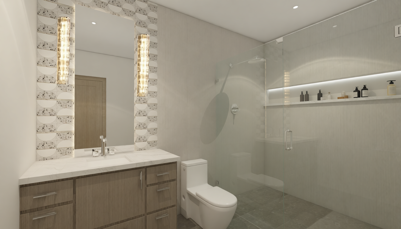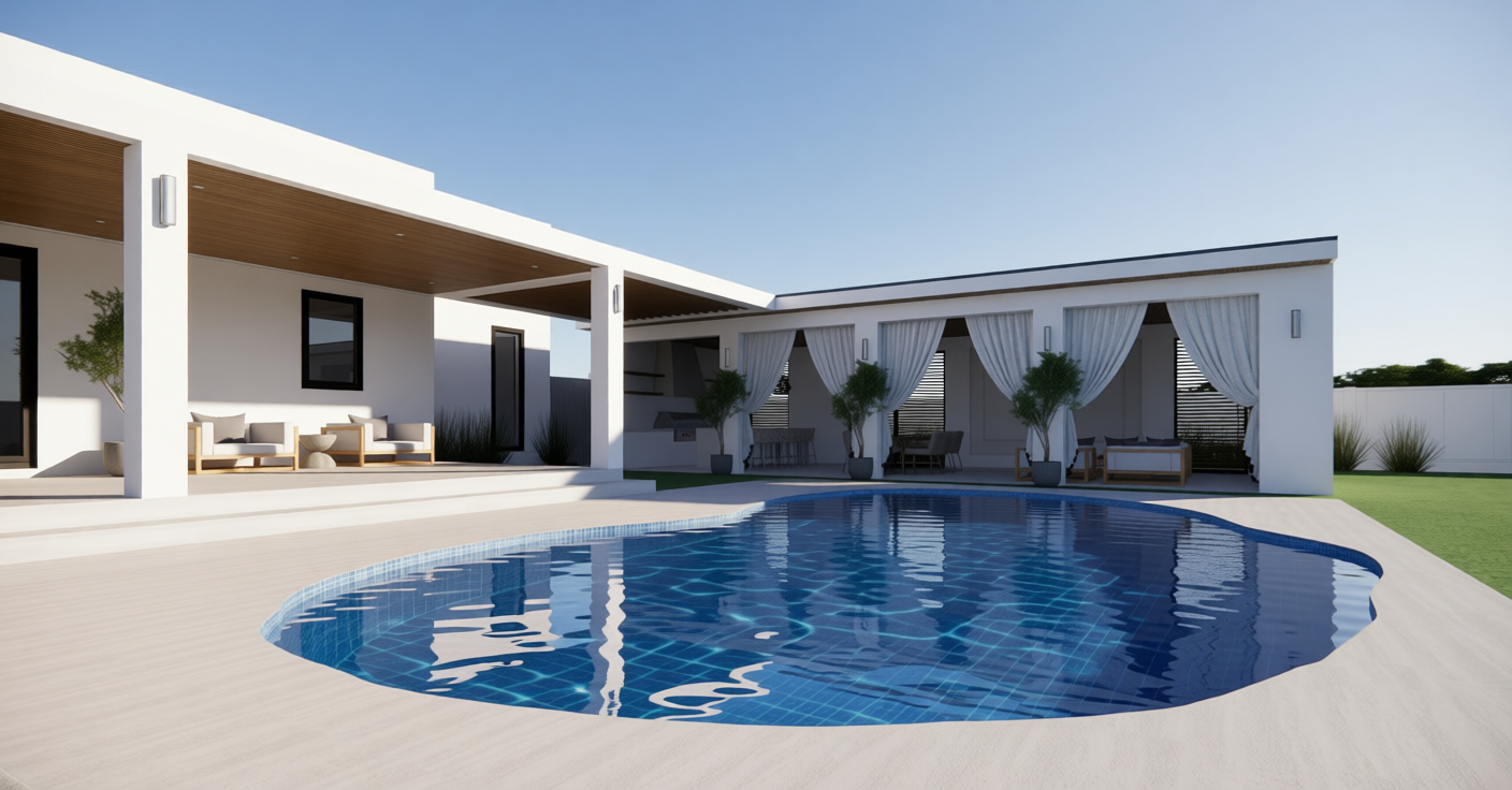 transform the provided 3d line drawing into a highly realistic architectural exterior rendering that closely follows the style composition lighting and material realism of the reference image render the home with a refined modern aesthetic featuring brown brick masonry on the primary massing and light white stucco on secondary volumes with clear accurate material transitions and visible texture detail brick should show subtle variation in tone and mortar joints stucco should appear smooth with soft natural shading the roof shall be asphalt shingles with realistic scale depth and muted neutral coloration use natural soft daylight lighting slightly warm diffused and low contrast creating gentle shadows and a calm upscale residential mood avoid harsh highlights or overly dramatic contrast windows should feature realistic glass reflections dark metal frames and interior depth maintain clean architectural lines and precise proportions from the original 3d model while enhancing realism through materials lighting and environmental context do not add architectural elements enhance what is there
