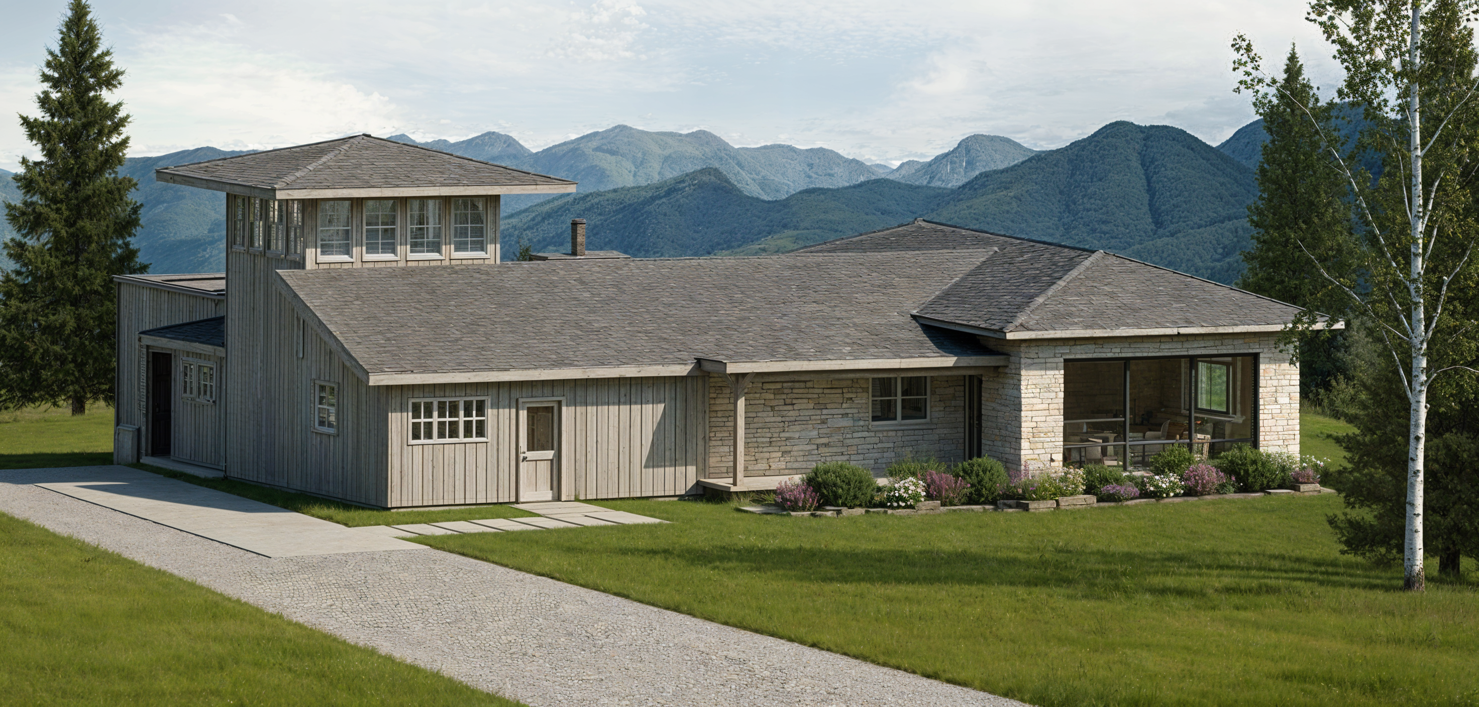 a manicured lawn layered flower beds low maintenance shrubs native plants stone pathway leading to the entrance
