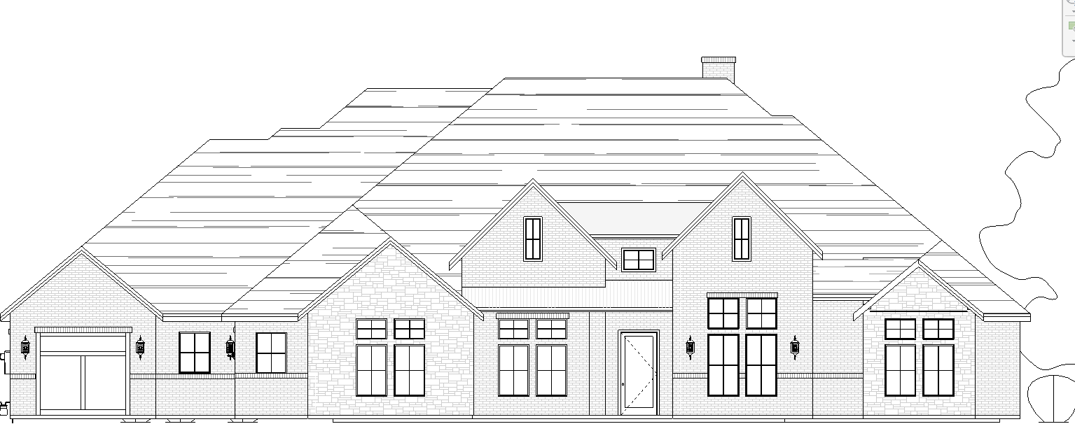 brick brick and white stone on the 2 front gables black windows and black roof over casted day