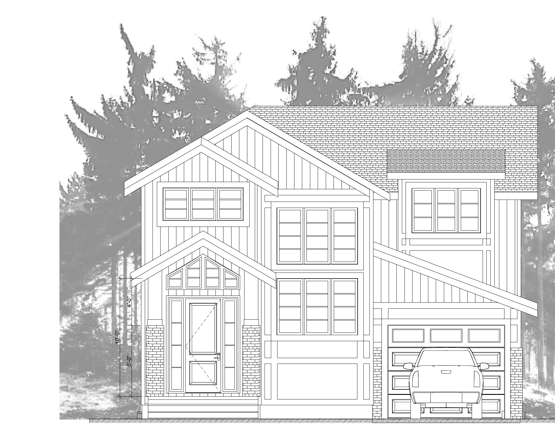 dark roof cream siding black windows black soffits cedar pillars on front porch cedar garage door stone around garage entire wall