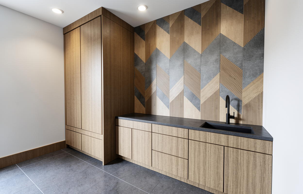 remove the doors to the tall cabinet and include a washer dryer inside the cabinet