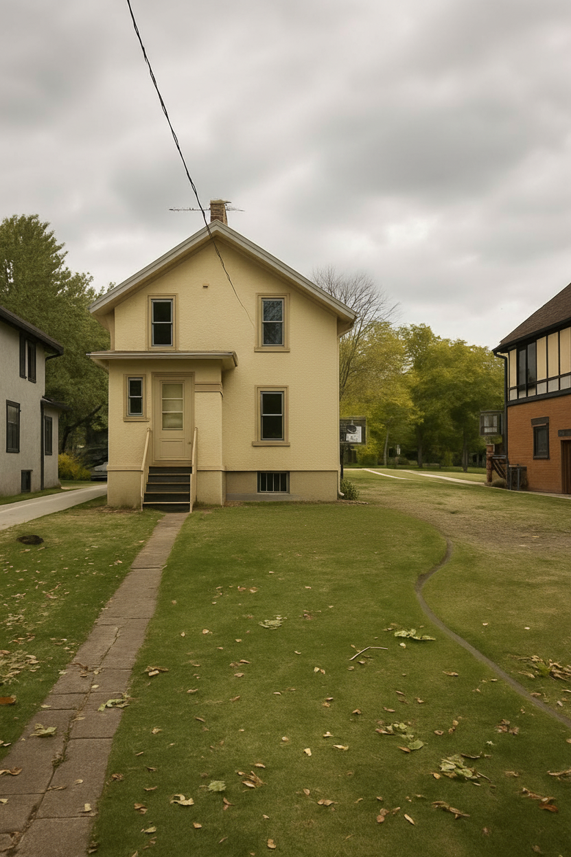 exterior shot change the color of the home light gray with white trim and windows