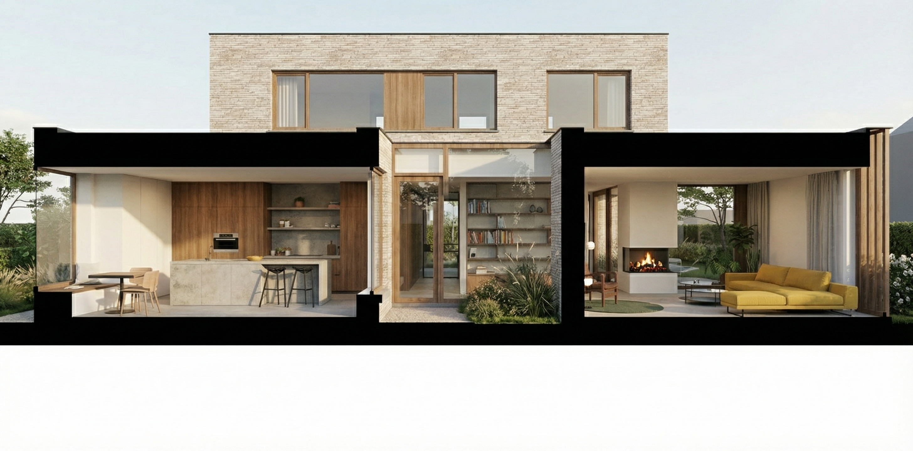 this is a residential project in nsw australia the lot is with steep slope so the rear part of the structure is at upper ground level and the front part of the structure has a lower ground level the earth is divided by a retaining wall at the left side shown with rock face wall add steps access from the garage level above to the lower ground level below the exterior cladding are all board and battens in charcoal gray paint finish with vertical wood boards accents as shown the balcony at the upper floor is off hardwood deck with glass railing all around and the lower deck is of the same hardwood material the site sits on a lush grass area with views of forest all around
