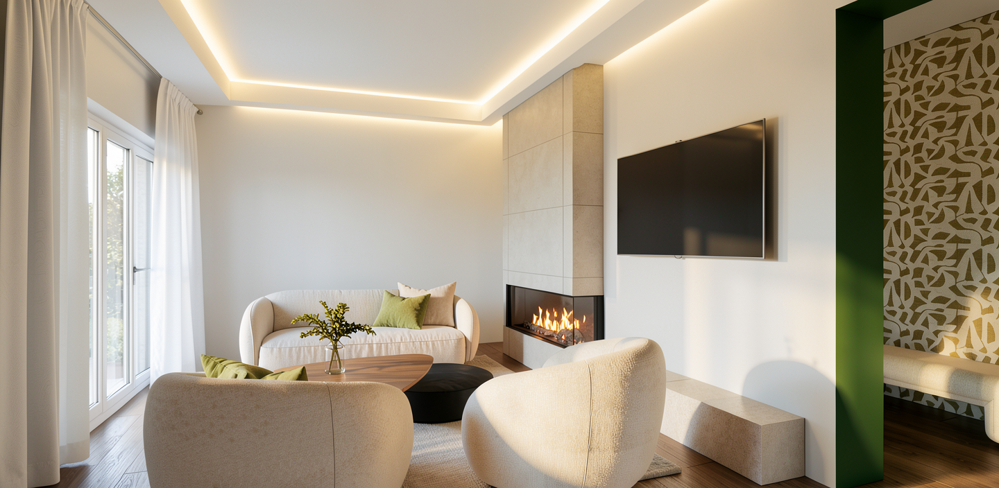 to the right of the house a hedge is allowed on the plot boundary with some small trees behind it on the left is a full driveway with large gravel a paved section some plants and a hedge that screens the area behind the house do not change the house itself