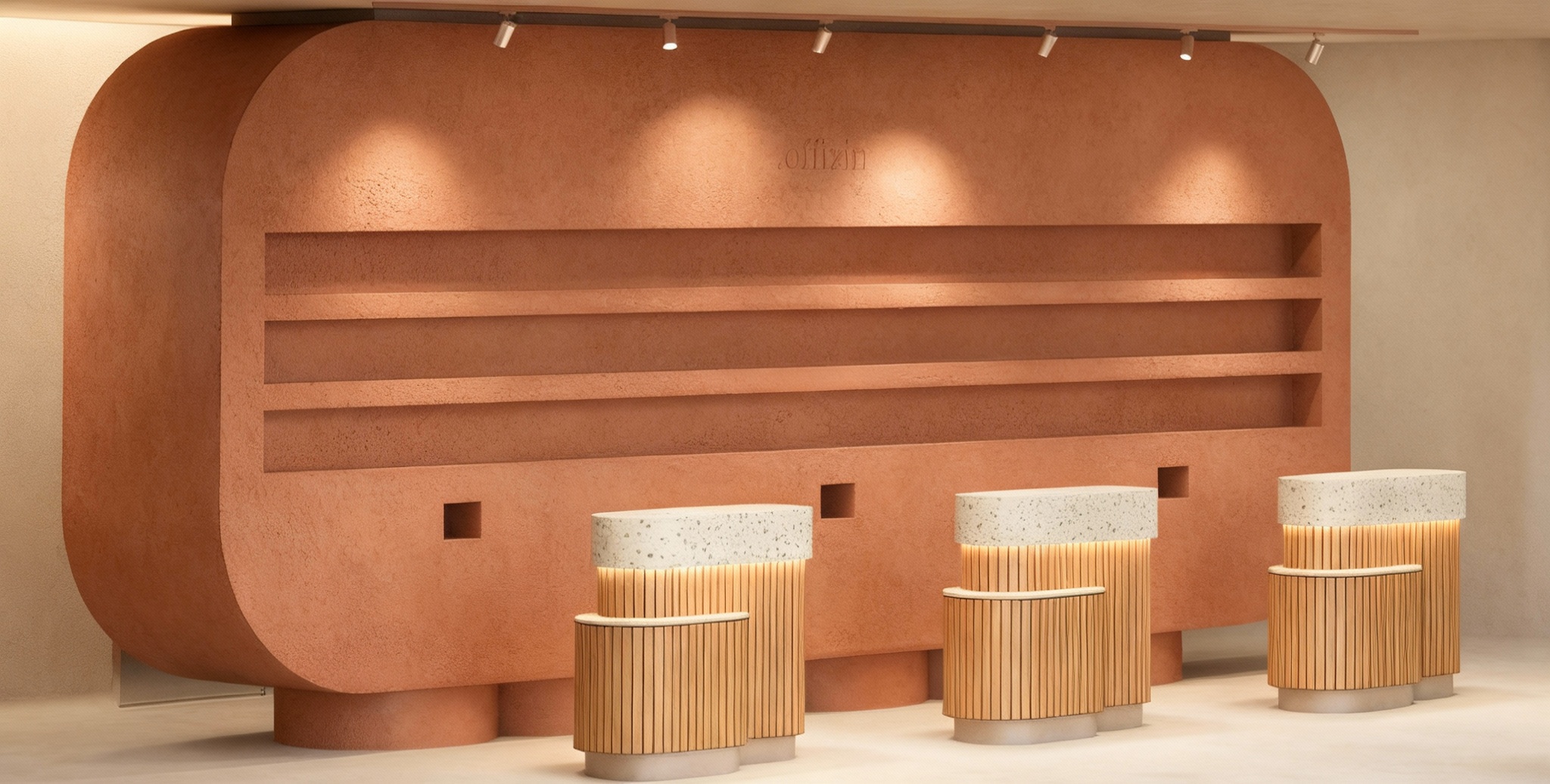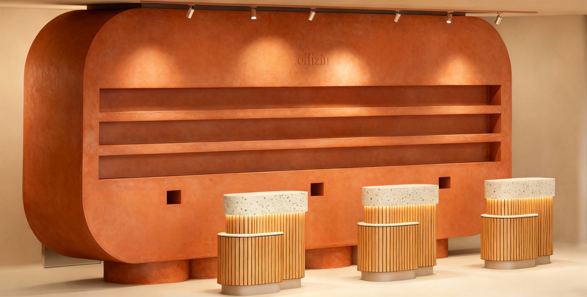 design and furnish the runway space with a clean contemporary architectural style the main area features modular vertical panels identical to the reference ones arranged rhythmically along the sides of the runway repeat these panels consistently into the distance and depth of the scene to enhance perspective and spatial continuity place one human figure standing in the foreground in the indicated position clearly visible and well lit add a second person further away along the runway smaller in scale to reinforce depth and realism the environment should feel spacious minimal and refined with balanced lighting and soft shadows use a neutral material palette with subtle textures render the image with high visual quality sharp details realistic materials accurate proportions cinematic composition and professional architectural visualization standards