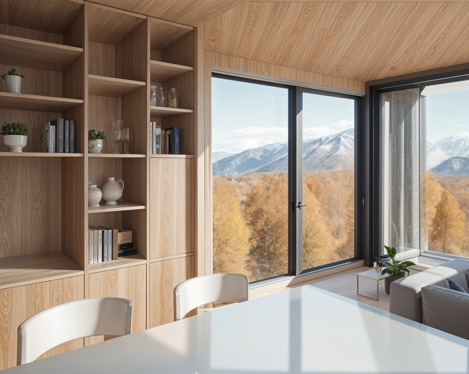 enhance this image by adding realistic texture and depth to the materials while keeping the original fidelity of the cabinets preserve the exact colors shapes and models of the cabinets but make the surfaces reflections and lighting look as realistic as possible as if in a real life photograph make cabinets white color make island solid gray color from original image