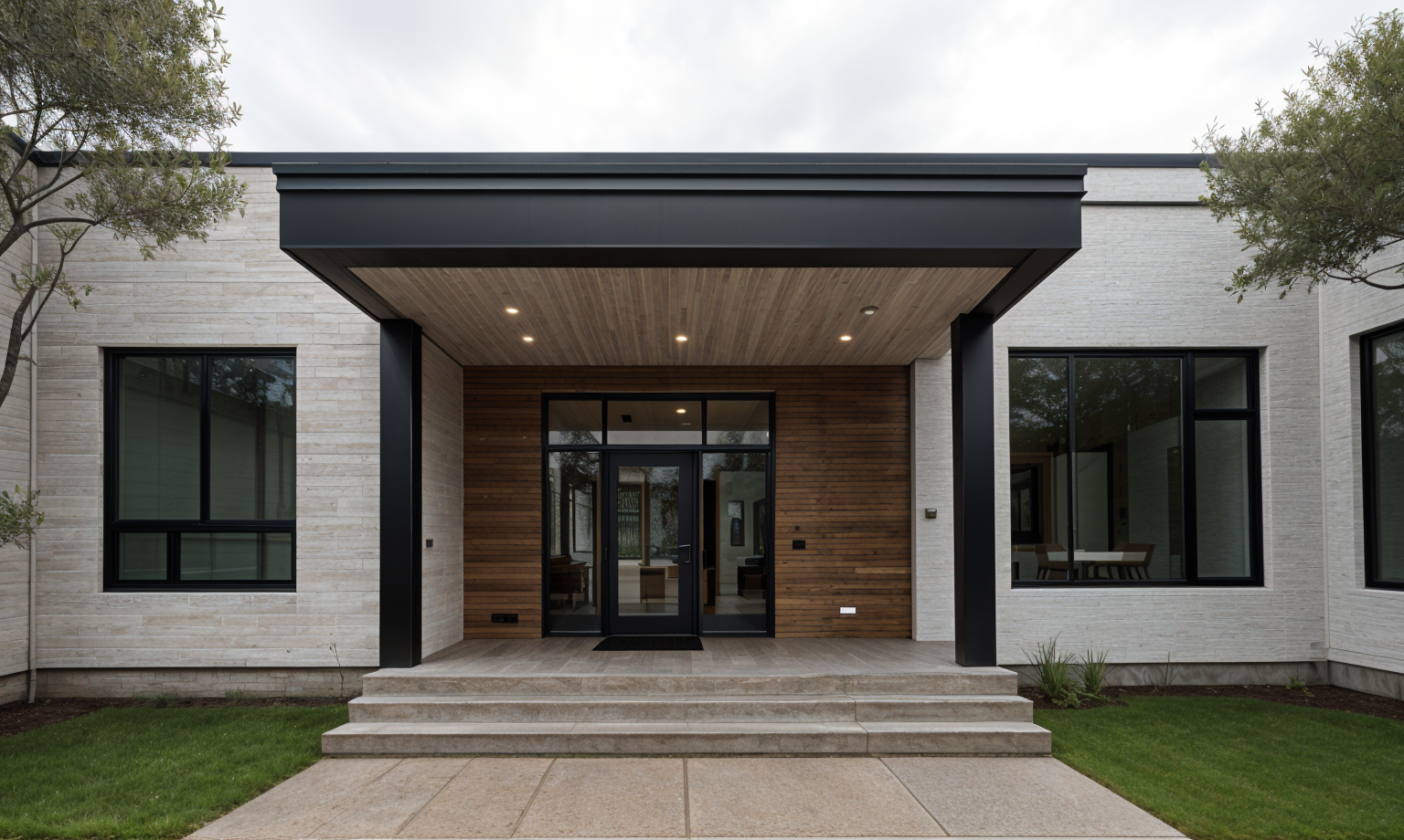 the buildings are designed with glass fa ades and accented with rusted metal details most of them incorporate green roofs populated with trees and shrubs of various sizes the large building in the background has its corners raised higher gradually sloping downward toward the opposite corner in a smooth wave like motion although the composition is continuous each building remains visually distinguishable through its form height and material expression