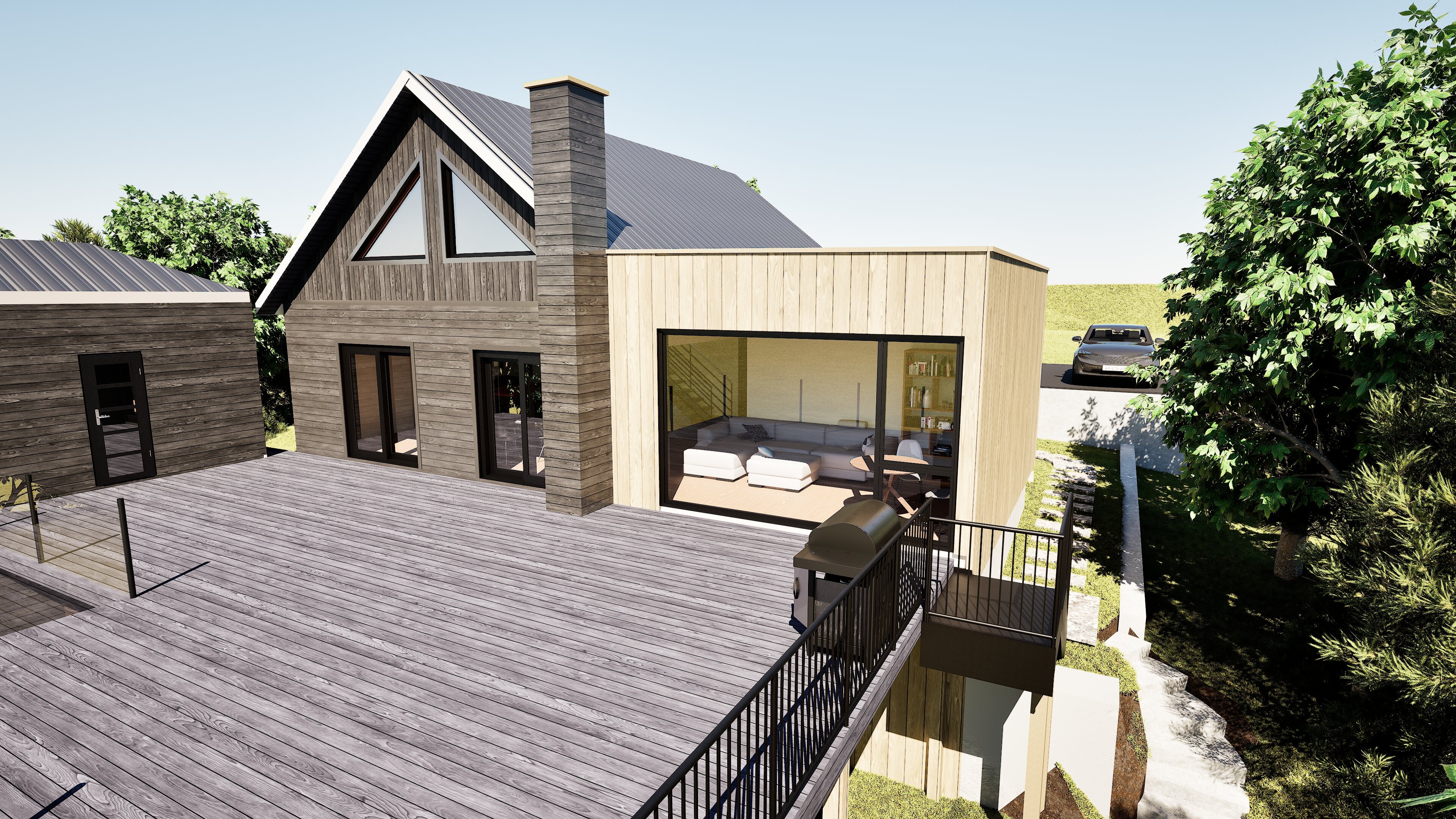 rend moi cette image le plus r aliste que tu es capable pour te mettre en contexte cette maison se trouve a val morin au qu bec il n y a pas de lac que du bois ne change pas les couleur ni les types de mat riaux fais juste rendre le tout plus r aliste stp merci en avance