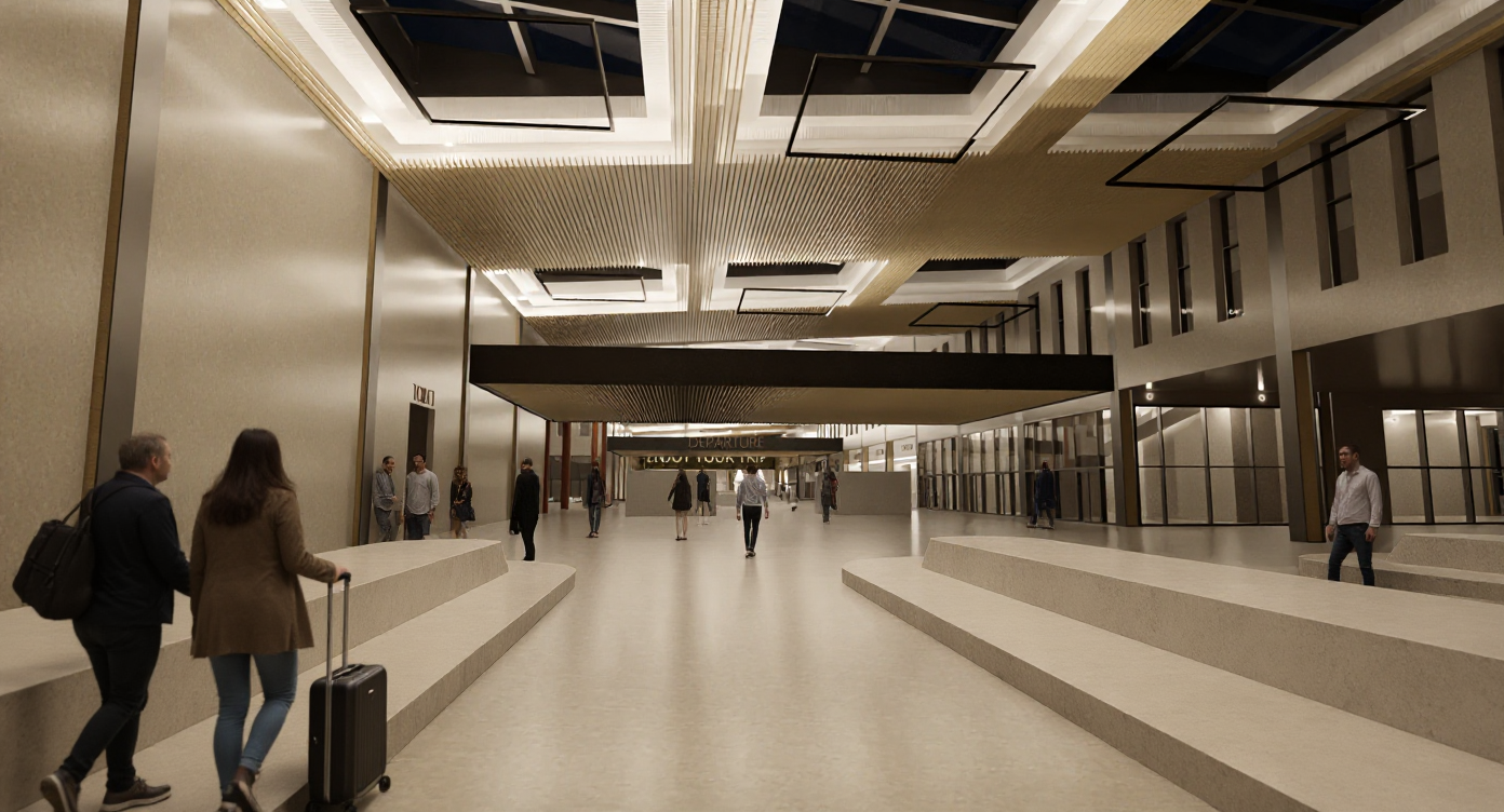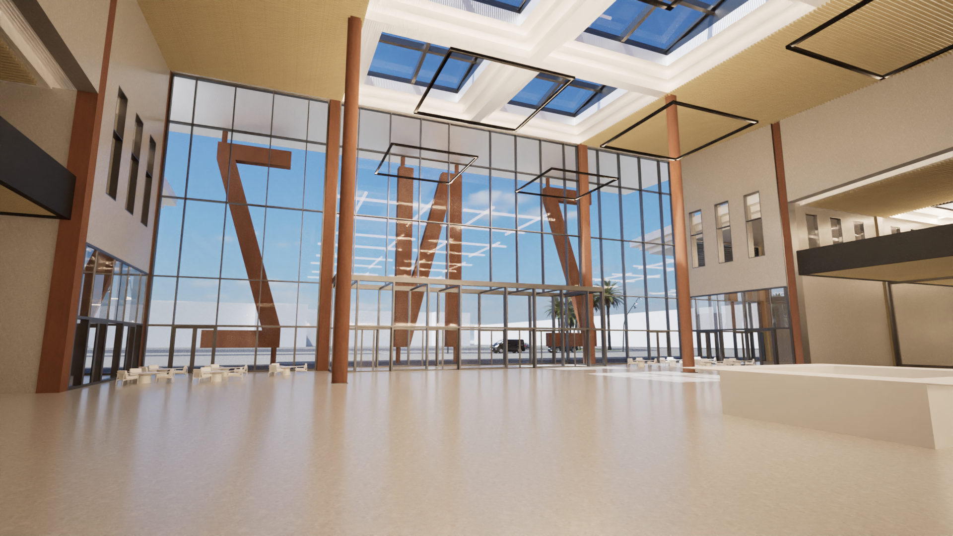 add thousands of people and palm trees outside