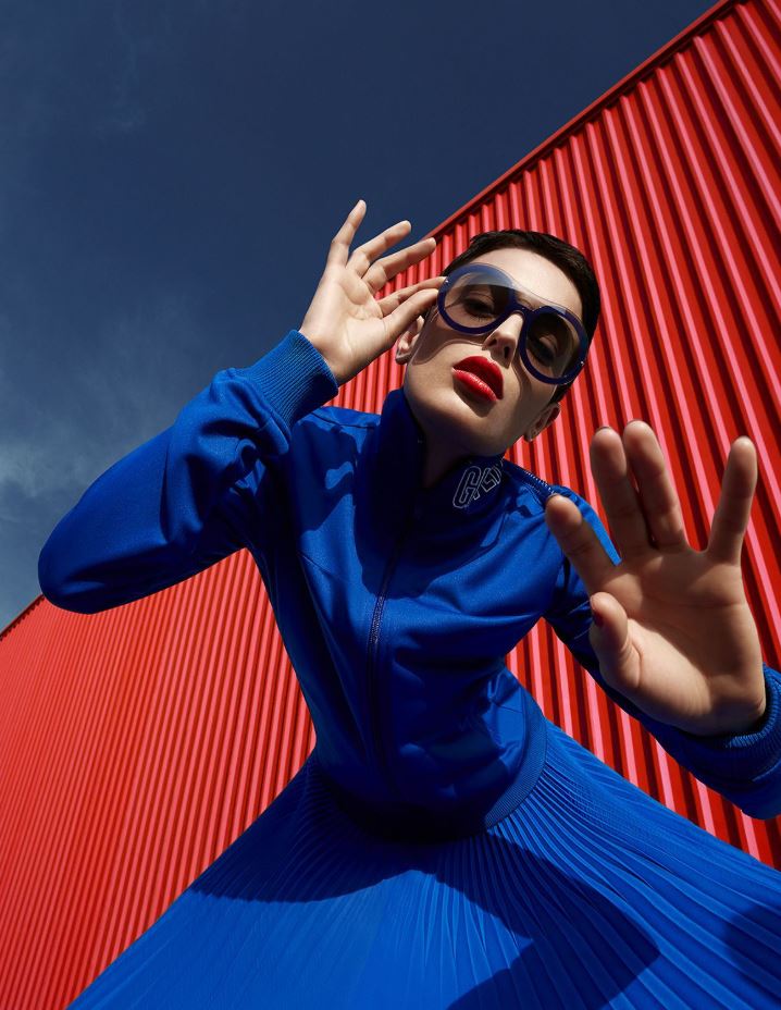 make the vertical background yellow and a red outfit and blue skies