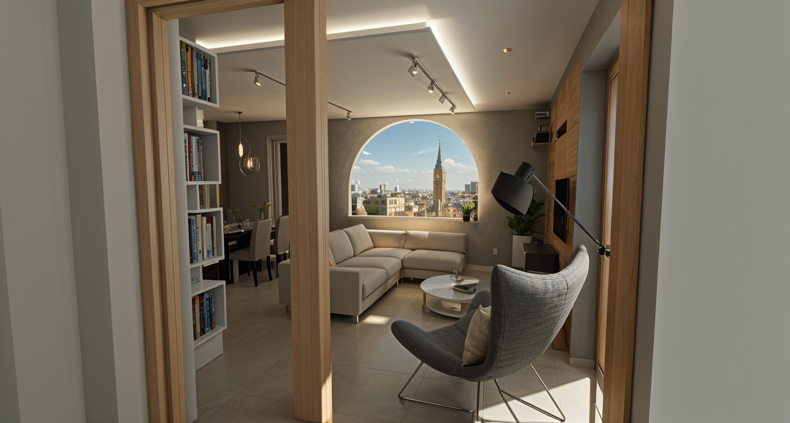 modern sleek white cemetery minimalist black roof surrounded by trees clouds light coming in sunset brigt atmosphere benches