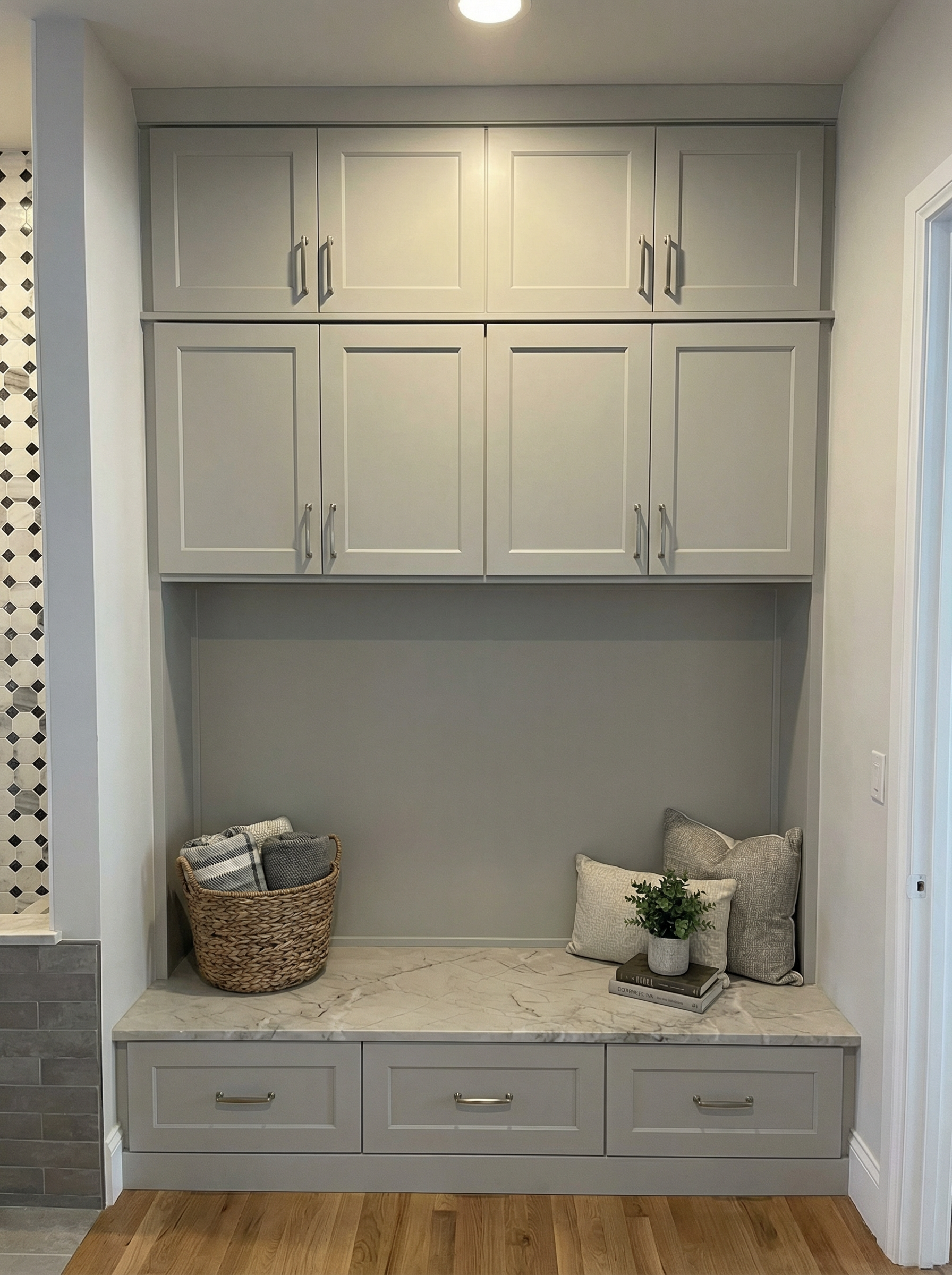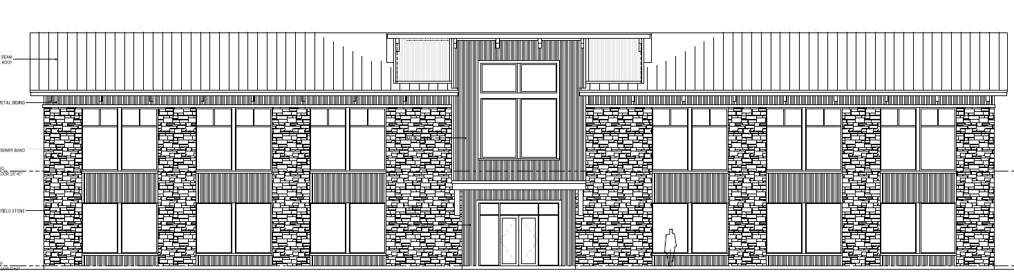 modern front office building with black trim windows white brick and black horizontal siding