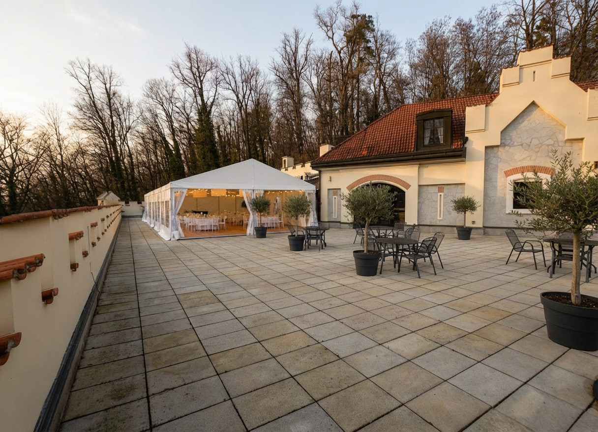 clear floor put more olives and more table groups on terrace use also cocktail tables without chairs