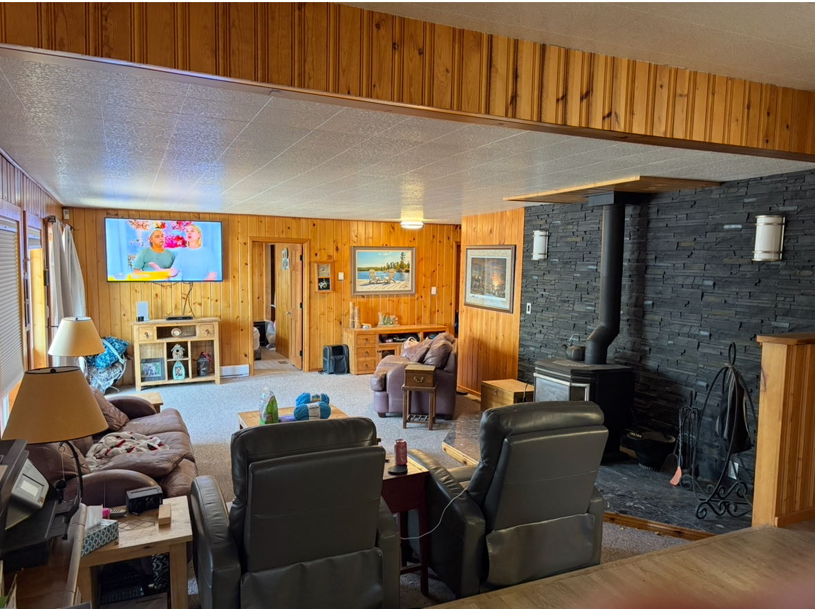 modernist interior shot create a modern space keep black stone behind fireplace mountain modern feel generate a realistic image of this living room architecture