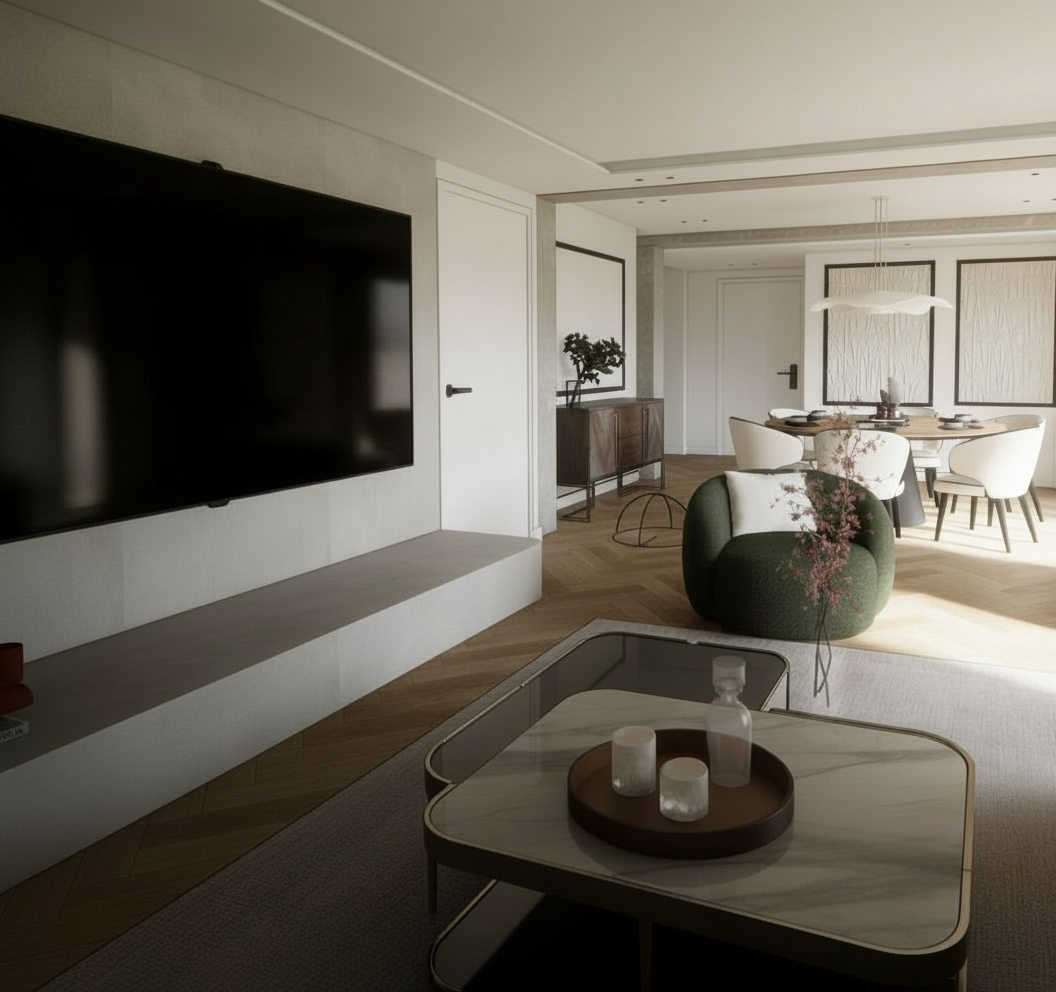 ilumina la imagen en la zona de la mesa de centro ademas el mueble que esta debajo de la tv en el suelo es color beige la mesa de centro parece dorada brillante pero no lo es es mate en un tono topo igual que el muebl que esta debajo de la tv