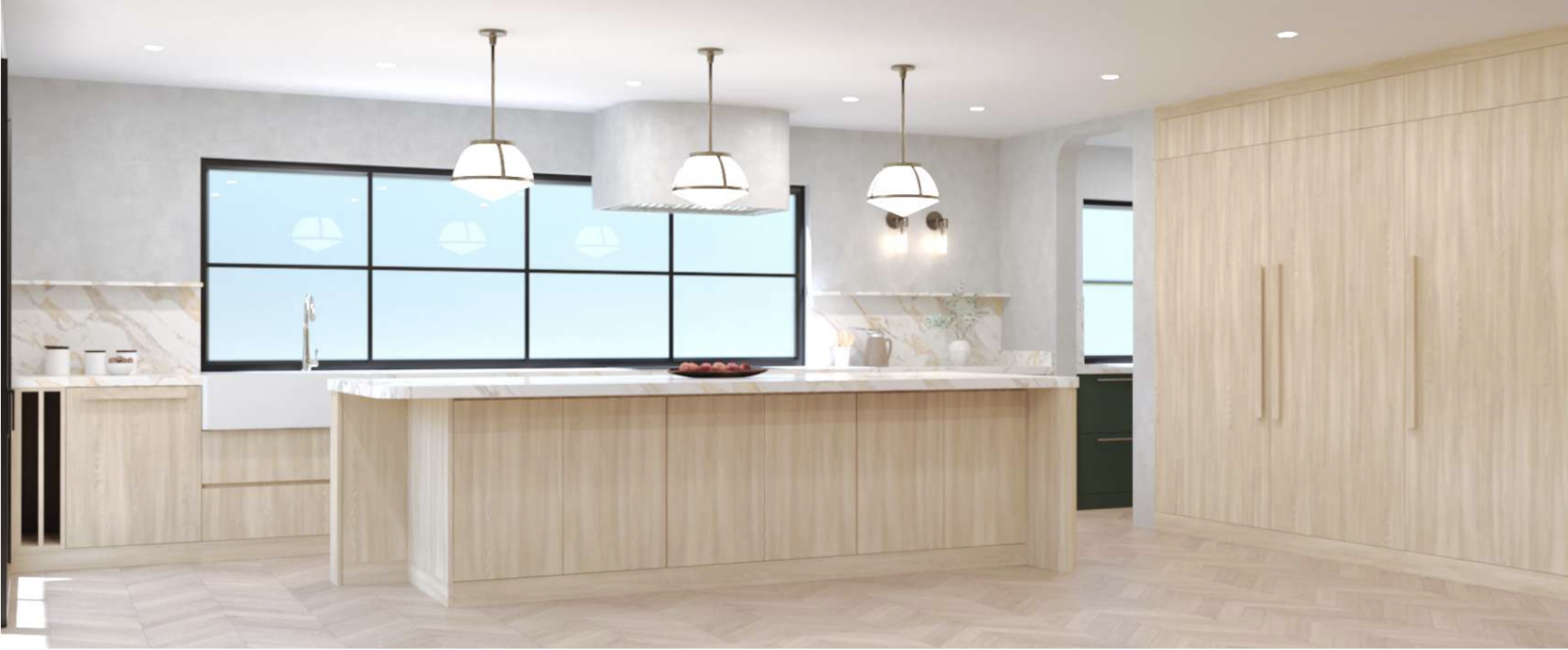 change to a dark wood remove pendants change island base and back cabinets to the same dark wood