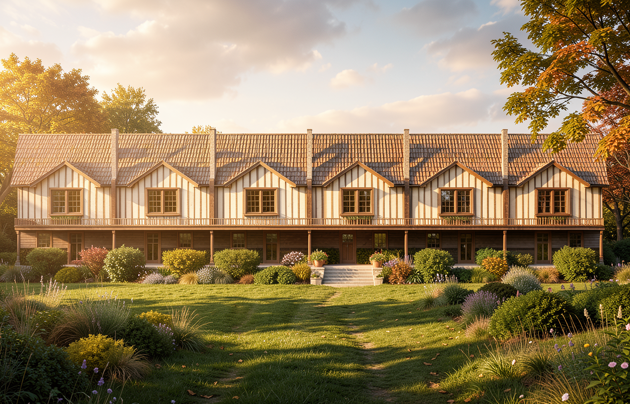 render this modern transitional luxury home change the exterior color of the vertical board and batten to a creamy white add light shrubs and flowers around the sides but not the driveway keep the windows and gutters and trim black change the front doors to be walnut color wood with half glass change the entry pillars to the same wood add a few trees to the lot behind the house add realism