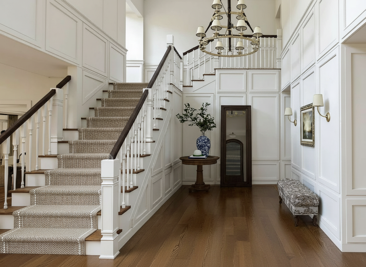 get rid of the cords boxes everything on the countertop replace with clean white carpet add clothes to all of the hanging rods include shoes purses and folded clothes onto the shelves make the chandelier lit and stage the countertop remove the spotlight in the back increase natural light