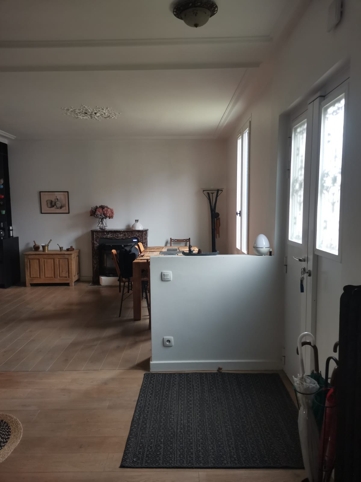 create an entryway unit with a bench for sitting and putting on shoes this bench will be equipped with drawers for shoe storage the corners of the unit are rounded it is made of walnut wood at the top create a screen for hanging coat hooks