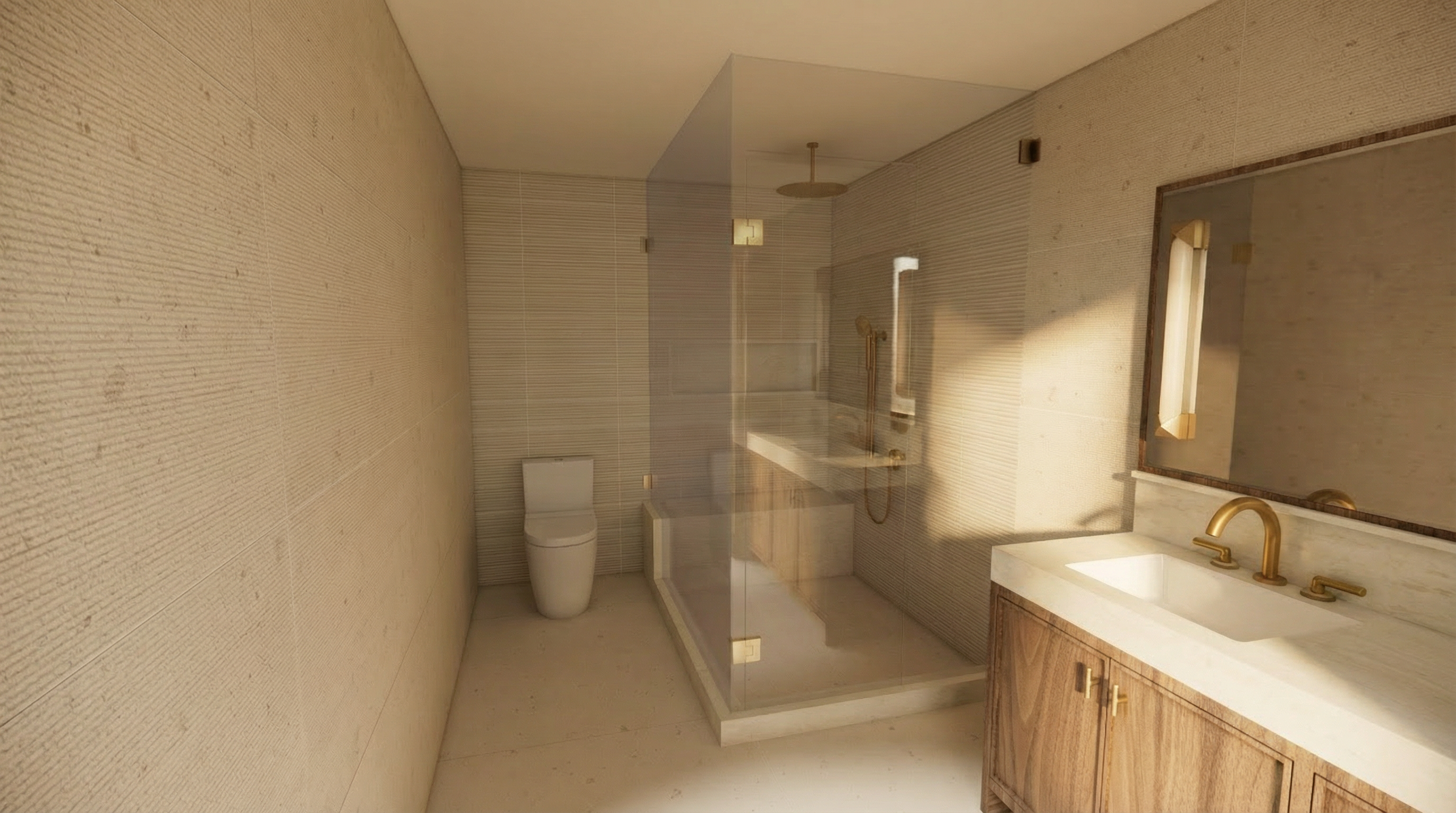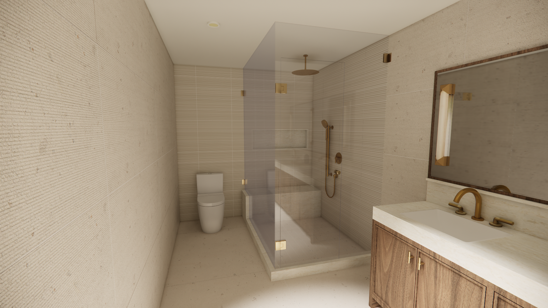 maintain floor and wall colour and texture make shower glass realistic remove pot light