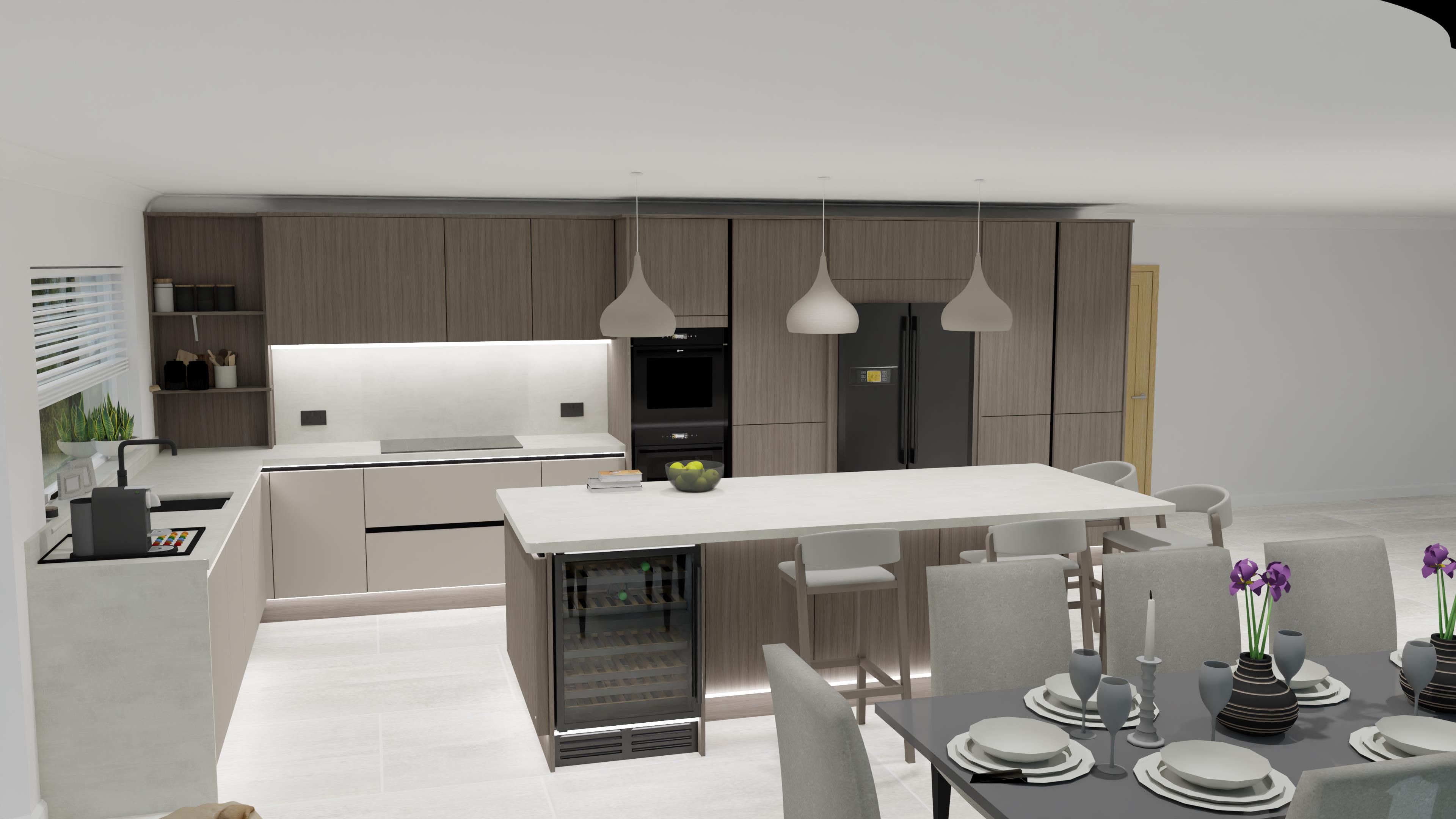 spotlights in ceiling illuminate the pendant spots over the island put place settings for a meal on the island dress the kitchen natural lighting