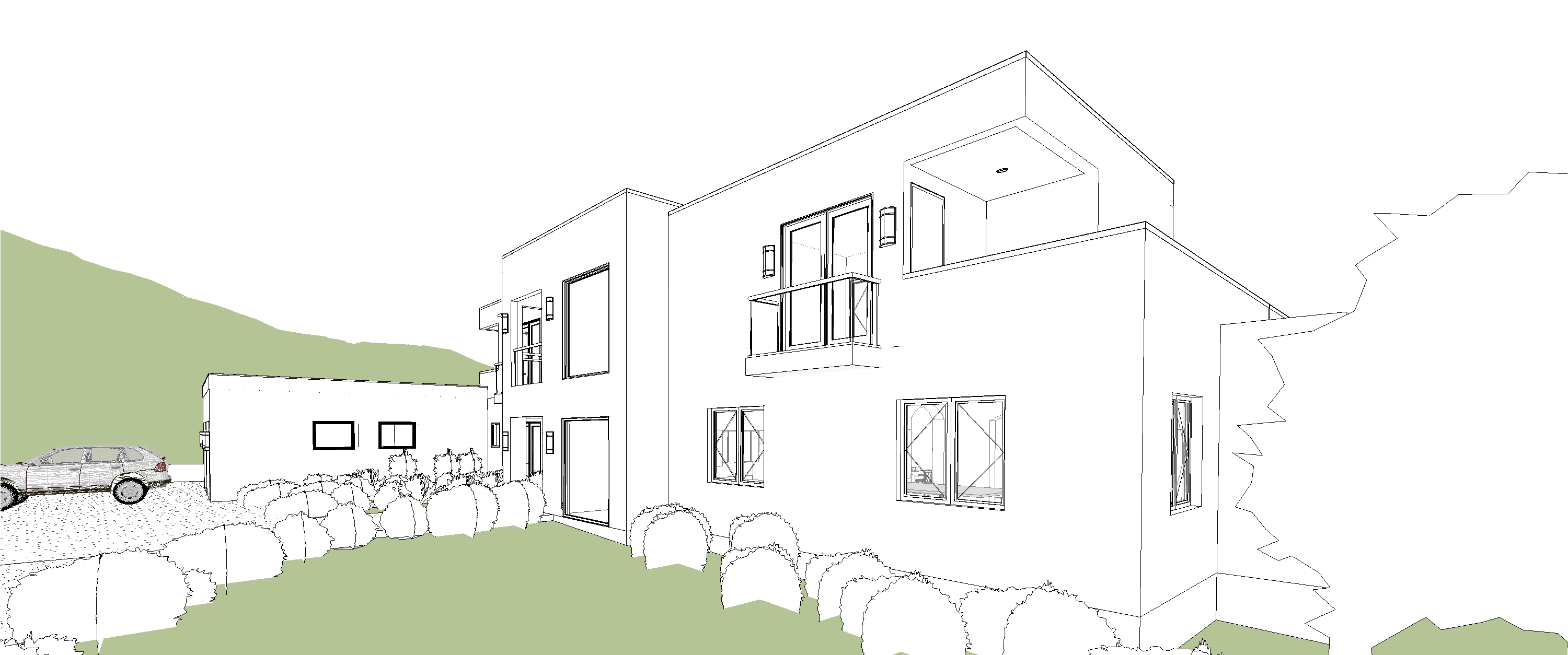 exterior white door and window frames black modern pavers on the ground