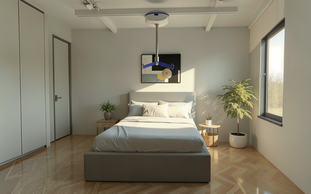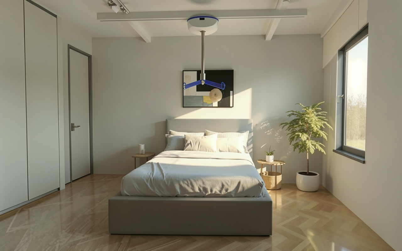 copy the bedside table on the right to the left of the bed
