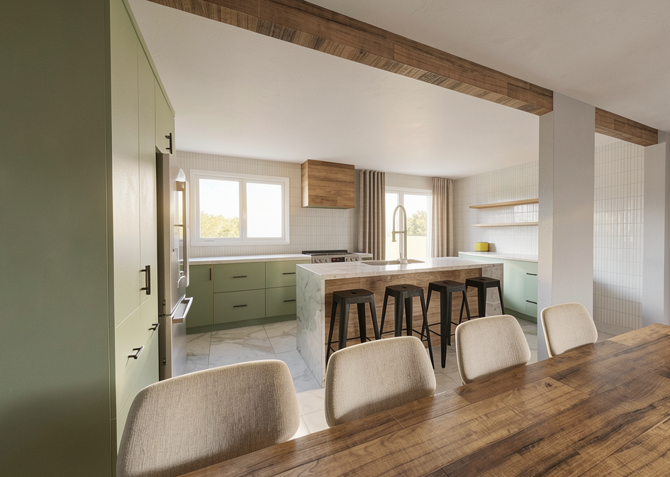 make the green cabinet white keep everything else the same