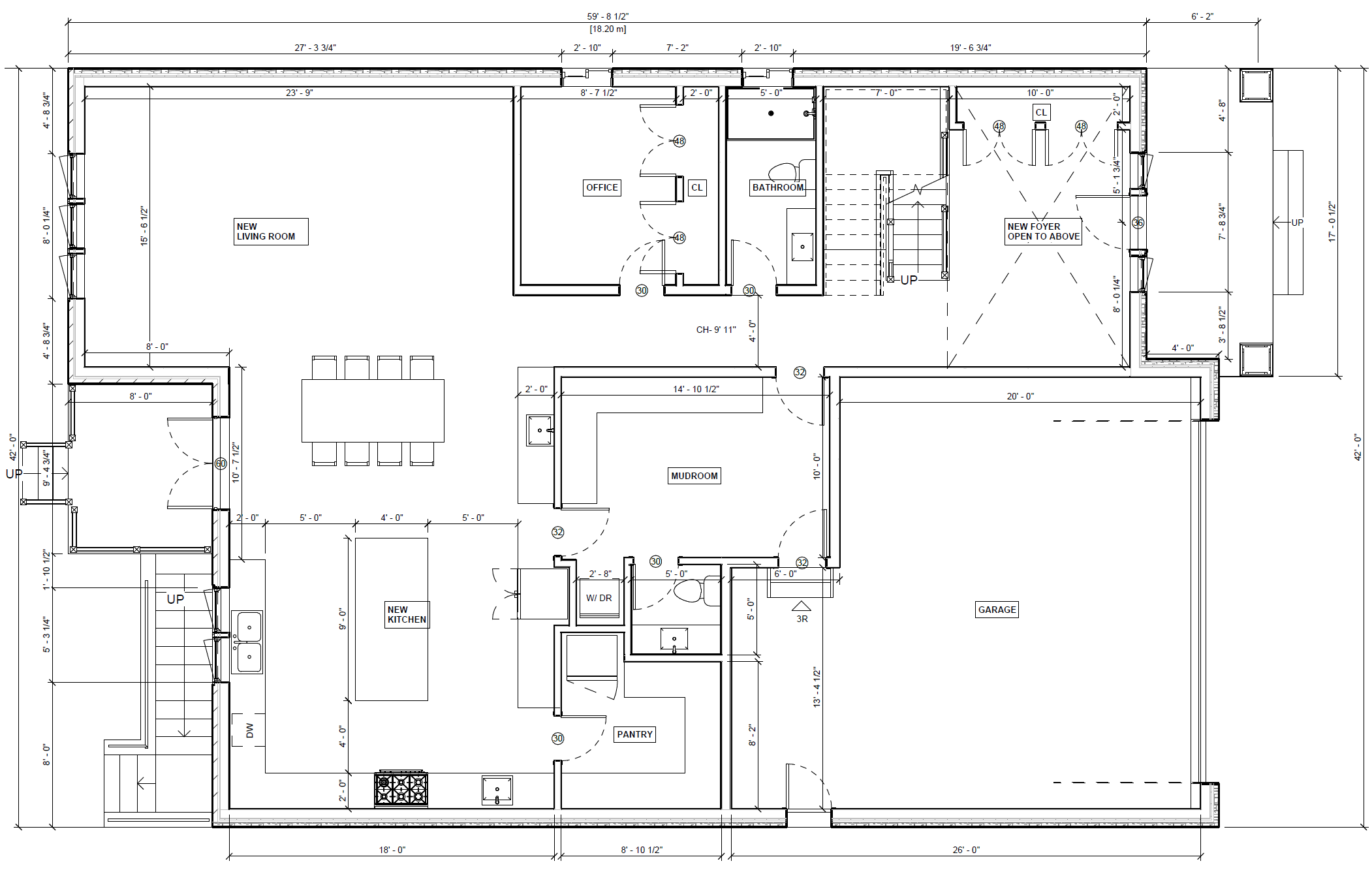 convert this floor plan into a realistic isometric 3d view of a full house show the space from an elevated angle with furniture walls and details visible create a realistic 3d isometric image of this main floor use a colour palette of beige light brown and walnut with white and black accents for a modern organic style use the same furniture as shows on the plan do not change the orientation of the floorplan