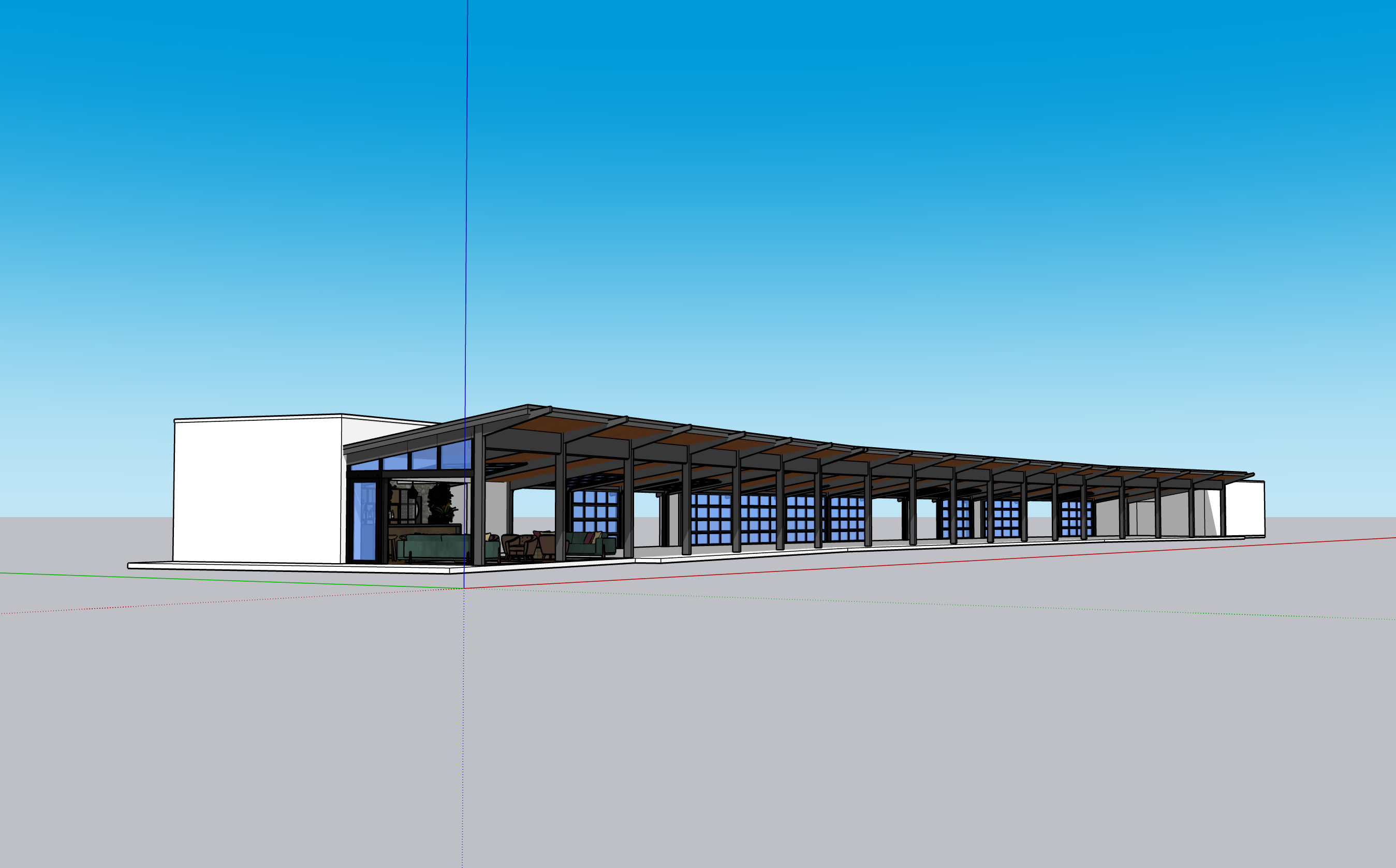 photorealistic architectural rendering of a modern open air golf lounge at 5pm golden hour warm sunlight casting long soft shadows across a sleek pavilion with exposed steel beams and wood ceiling focus on a lively upscale bar area in the foreground a bartender mid action pouring drinks 4 6 well dressed guests in smart casual attire at the bar engaged in conversation holding cocktails and wine glasses warm pendant lighting glowing above the bar backlit bottles realistic reflections on glass surrounding lounge seating with small groups izing casually in the background subtle golf driving range activity a few golfers practicing in bays not distracting atmosphere is upscale relaxed and vibrant cinematic composition shallow depth of field slightly emphasizing the bar ultra realistic materials wood grain metal glass soft sky with warm tones high dynamic range natural skin tones candid human poses not stiff or posed style similar to high end hospitality photography and architectural visualization 4k global illumination realistic shadows soft ambient occlusion